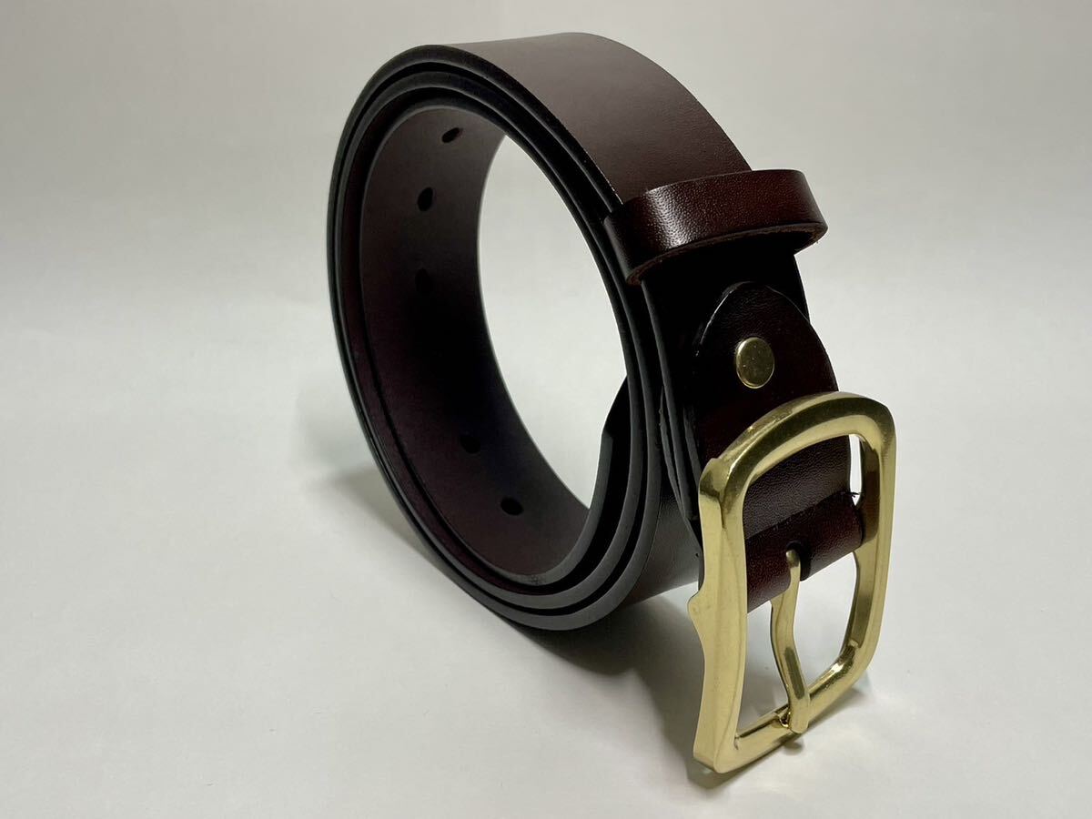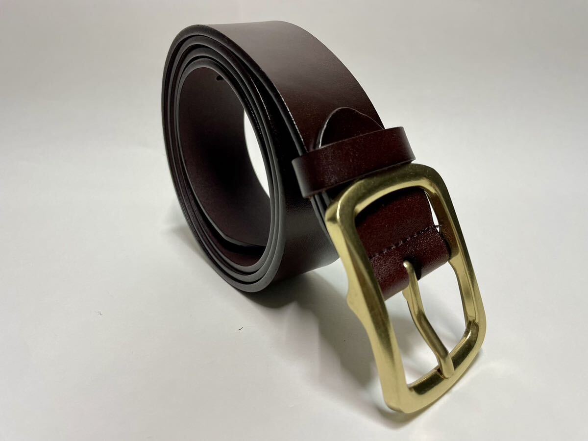 ゴールドのバックルとダークブラウンのレザーの相性が良く、大人な高級感が漂うベルトになっています。
