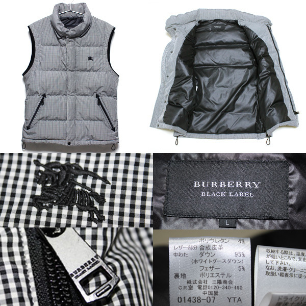 バーバリーブラックレーベル BIGホース刺繍 ギンガムチェック柄  撥水加工 2way ダウンベスト