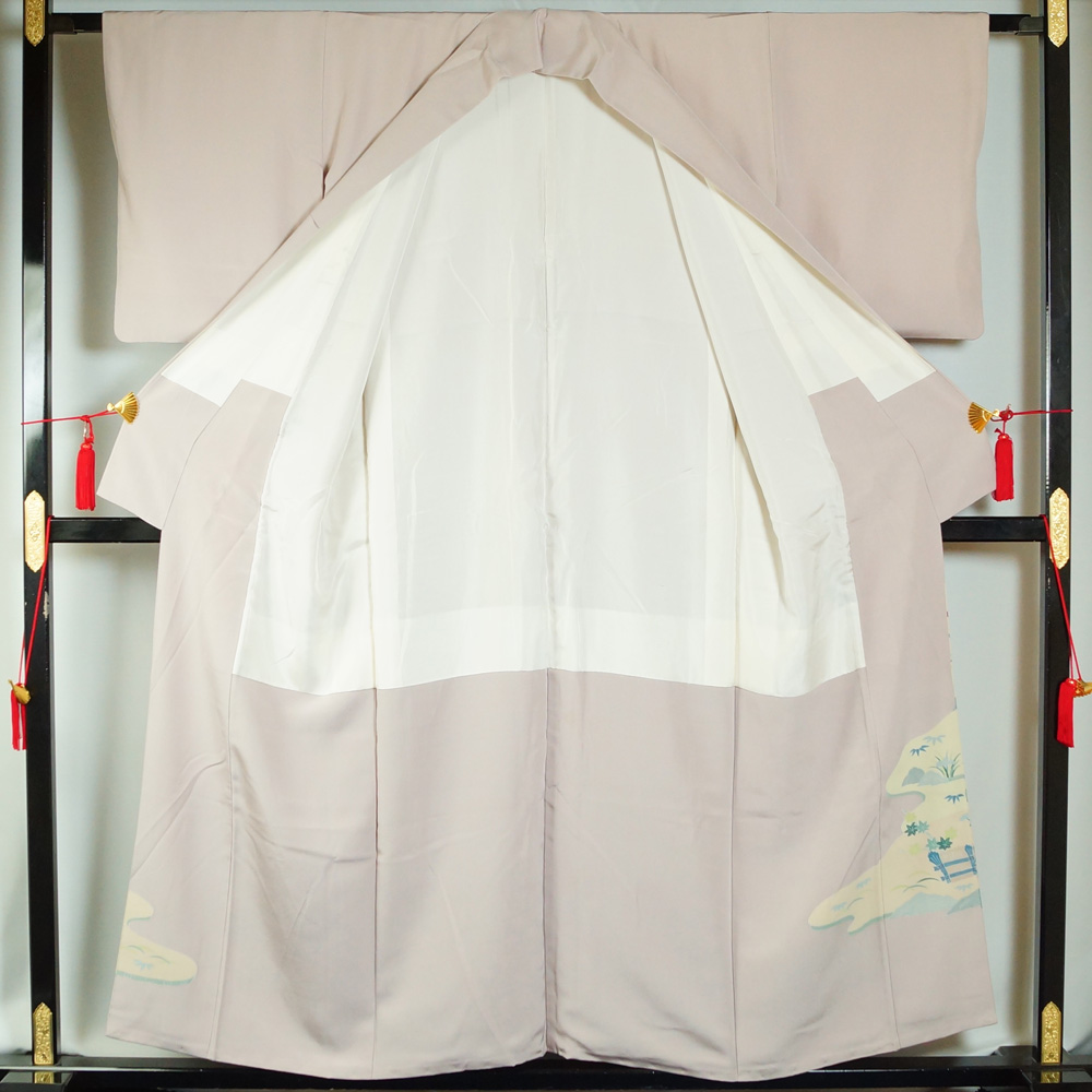 | 備 考 | 柄付けは色留袖ですが、比翼は付いていませんので、訪問着格となります。(上半身に柄はありません。) ただ、汚れ有りの難有品となりますので、ご理解ある方向きとさせていただきます。 |