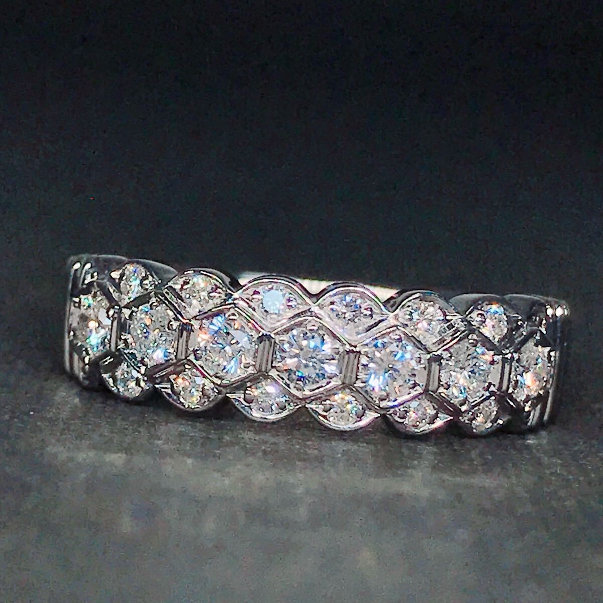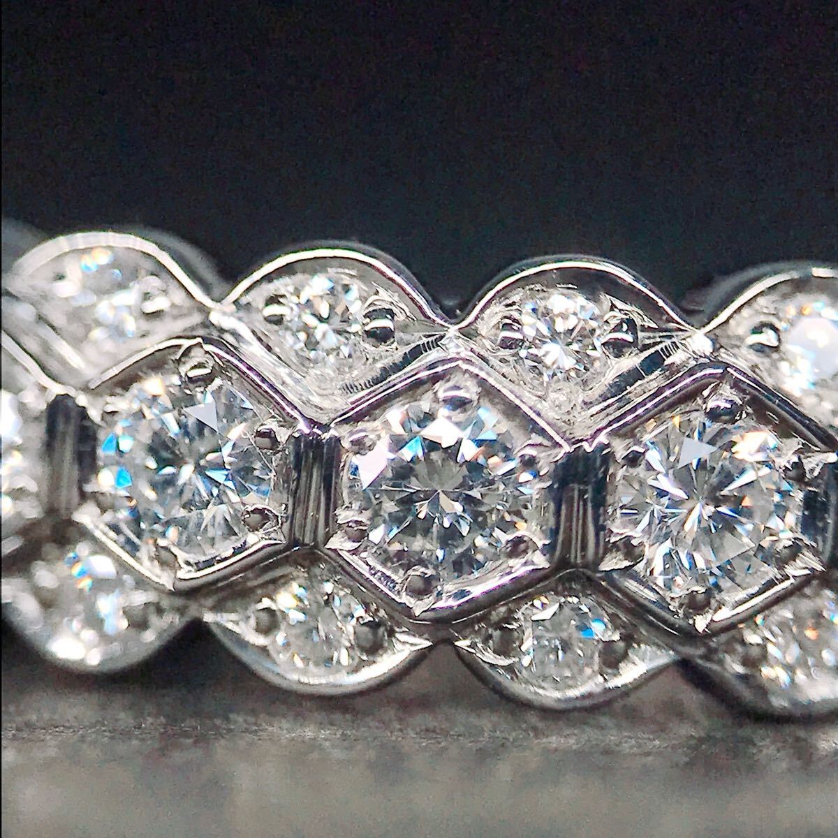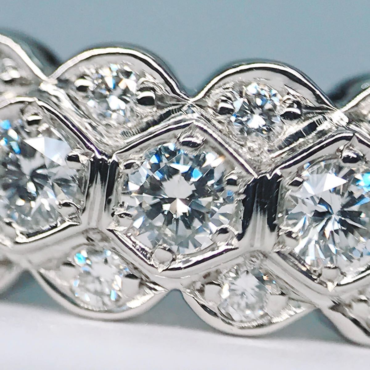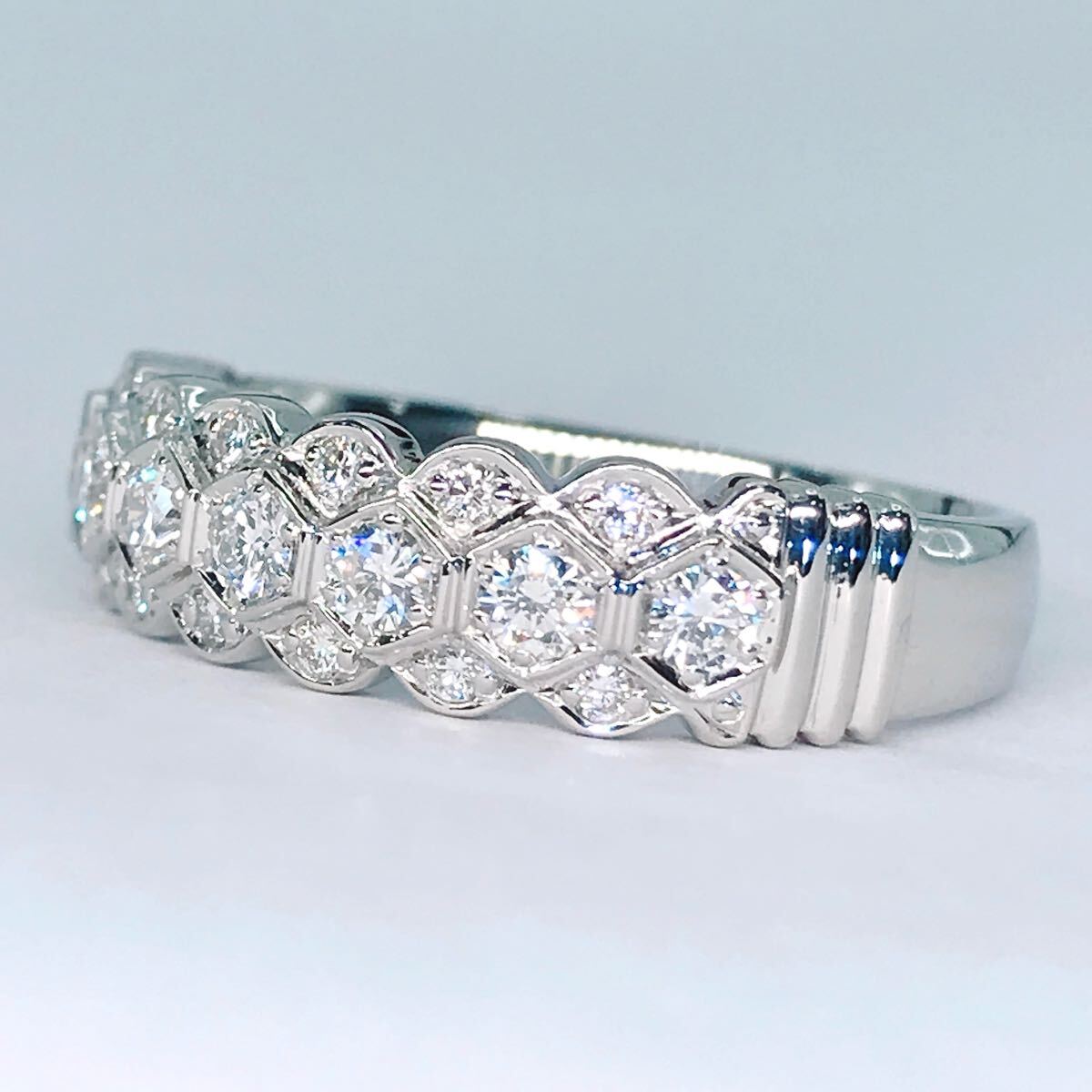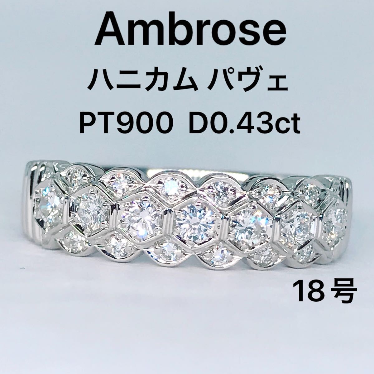 無色透明系の非常にテリの良い上質なダイヤモンドをハニカムデザインにパヴェセッティングしたアンブローズの上品なリングです。