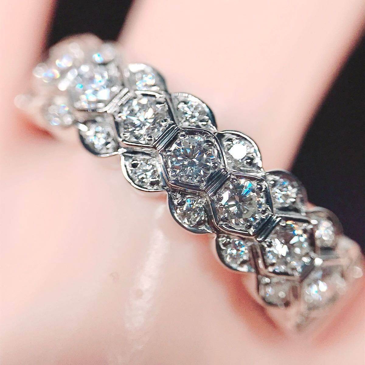 【商品名】パヴェ ダイヤモンド ハニカム リング