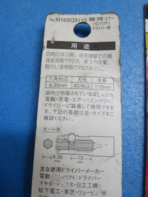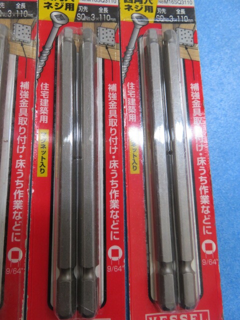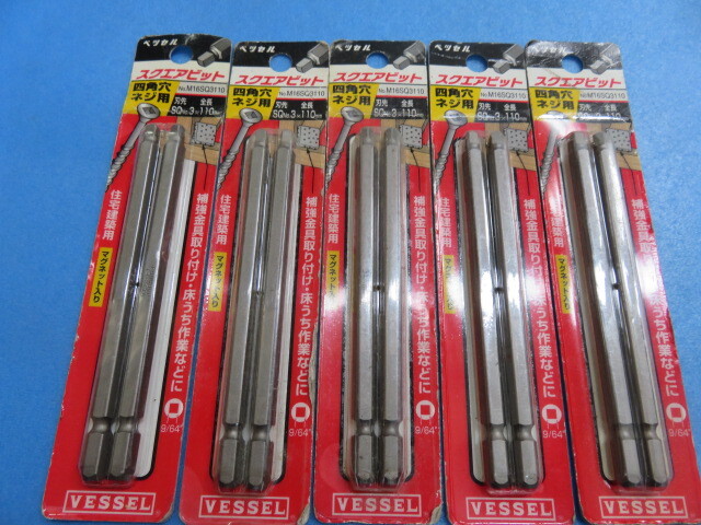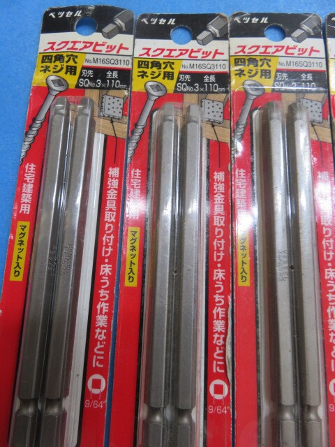 ベッセル 四角穴ネジ用スクエアビット[M16SQ 3110]3×110㎜ 計5パック 補強金具取付,床うち作業 送180