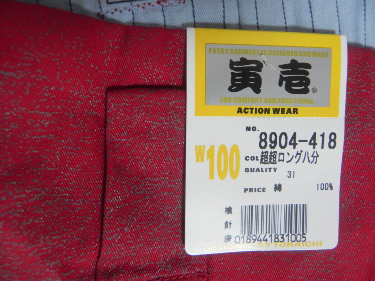 【ラスト1点】 寅壱 8904 超超ロング八分 W100 *COL.31(ワインレッド)*血筋柄 ※廃盤品 ヴィンテージ 超レア!