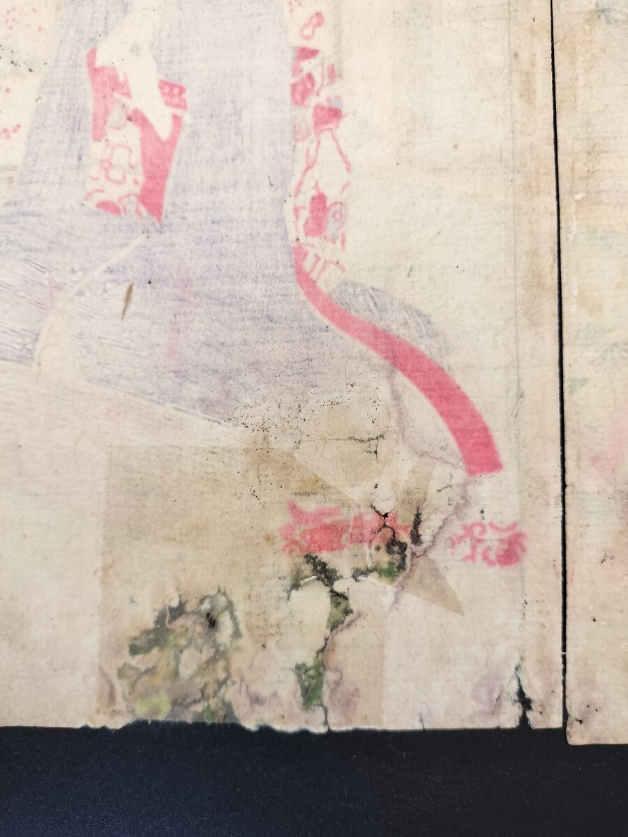作品のダメージにつきましては、すべての出品物は骨董品、中古品ですので説明しきれない時代物としてのシミ・イタミ・シワ・剥脱・ヤブレ・ヤケ・変色等見られます。目立つダメージは明記しておりますが、画像では見にくい細かなダメージがある場合がございます。骨董品・美術品としての特性としてご理解いただけます場合のみご入札をお願いいたします。