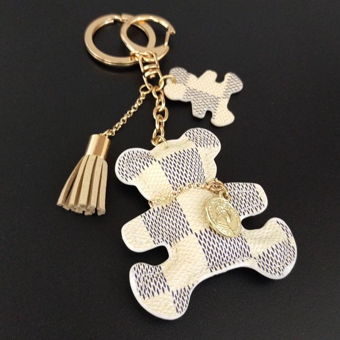 キーホルダー くま クマ チェック柄 市松模様 バッグチャーム かわいい 大好評 白