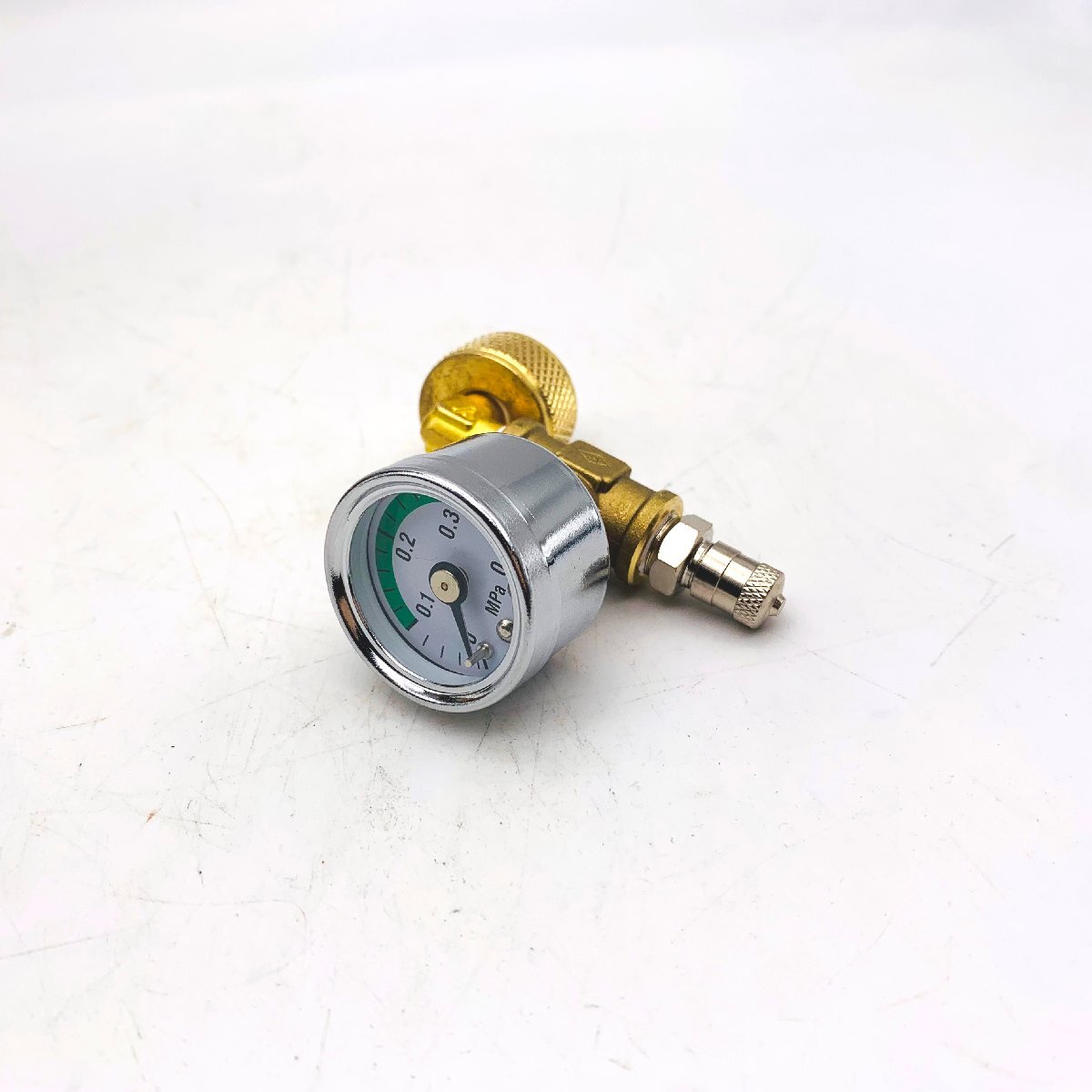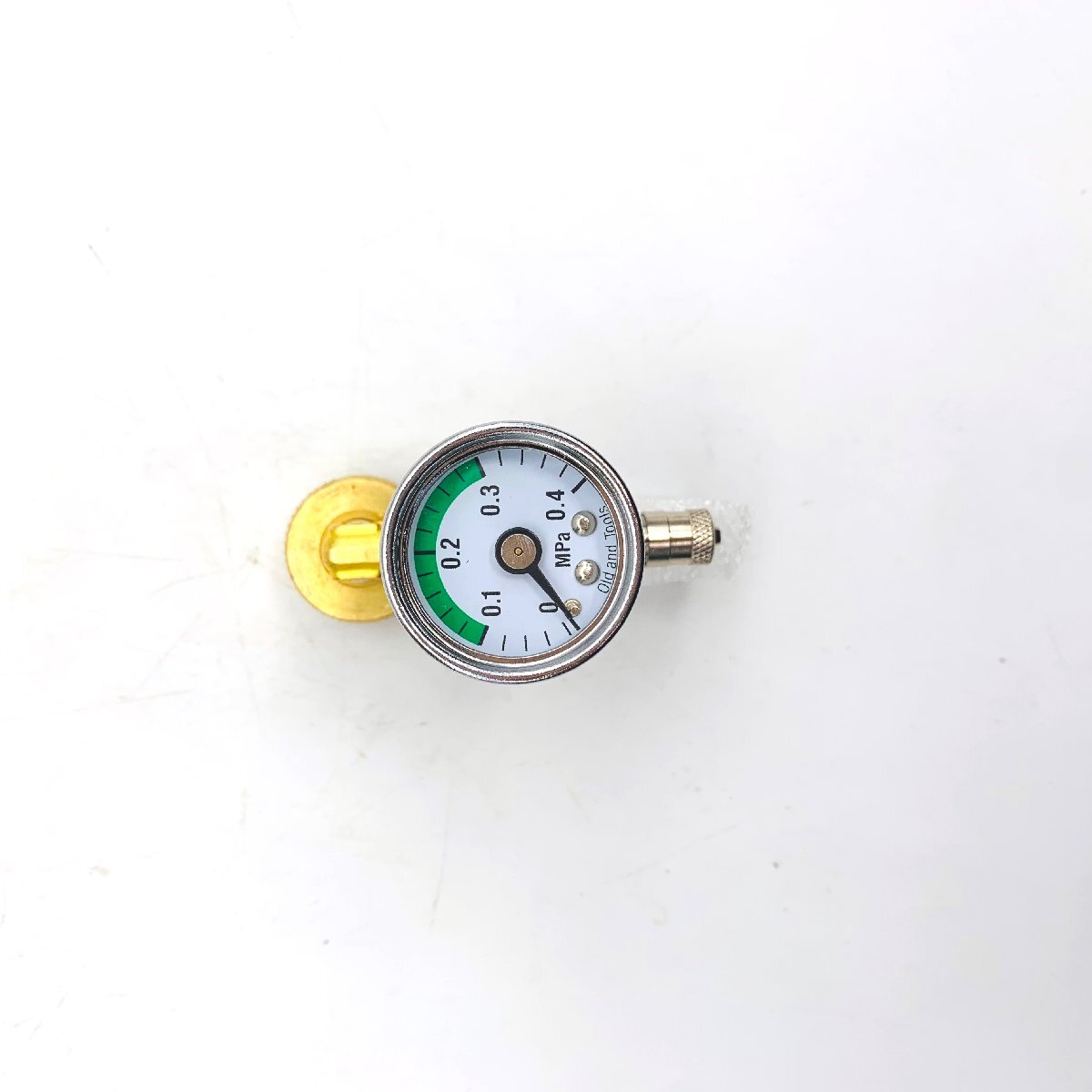 圧力計の窓はガラス製なので視認性も高いです。サイズは33mmです。