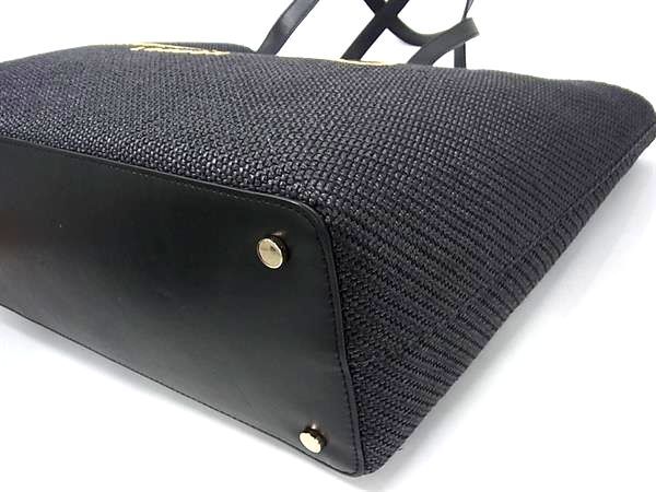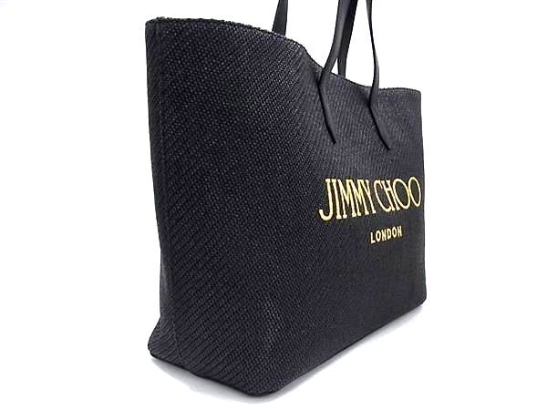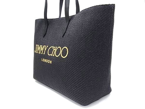■極美品■ JIMMY CHOO ジミーチュウ マルニ ストロー×レザー トートバッグ ハンドバッグ レディース ブラック系 FN1682
