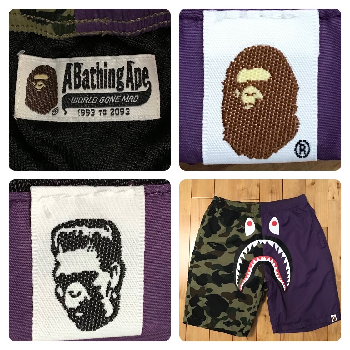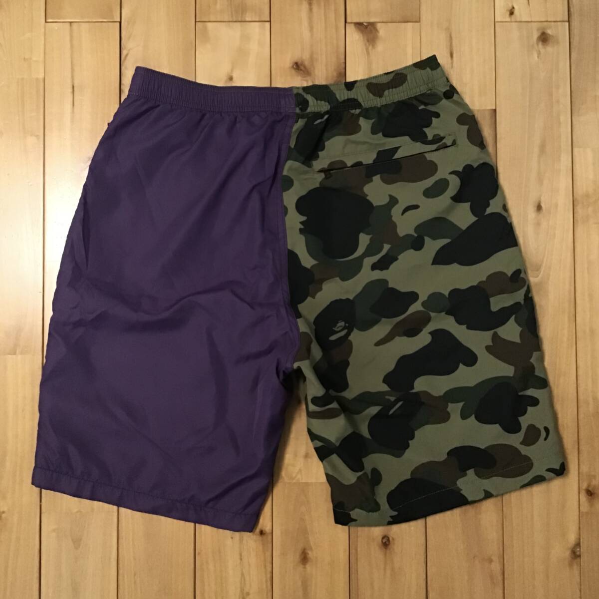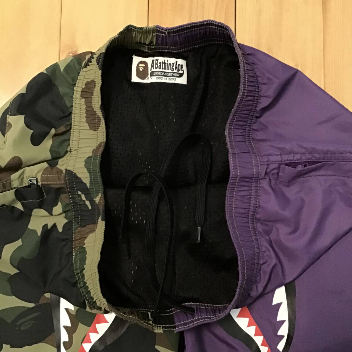 a bathing ape shark beach shorts 1st camo green × パープル Lサイズ です★