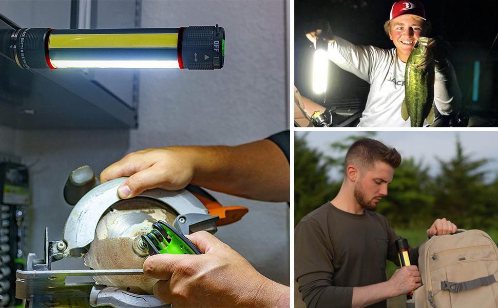 円筒形のフォームファクターにより、バックパック、トラベルバッグ、グローブボックス、タックルボックスに簡単に収まります。フリップアップハンドルにより、従来のランタンのように持ち運びや吊り下げが可能です。 底部に内蔵された非常に強力な磁石により、タイヤの交換やボンネットの下での作業など、さらに多くの配置の選択肢と用途が得られます。