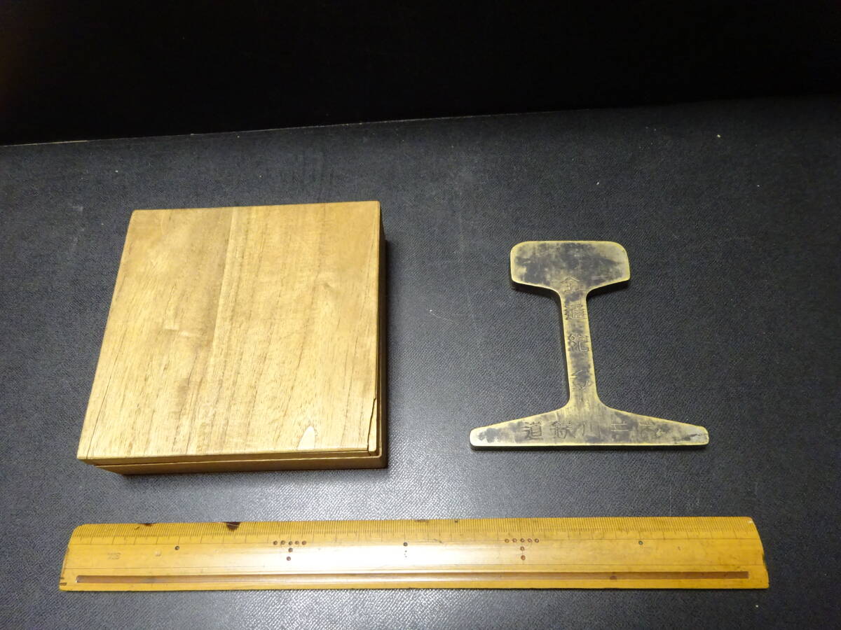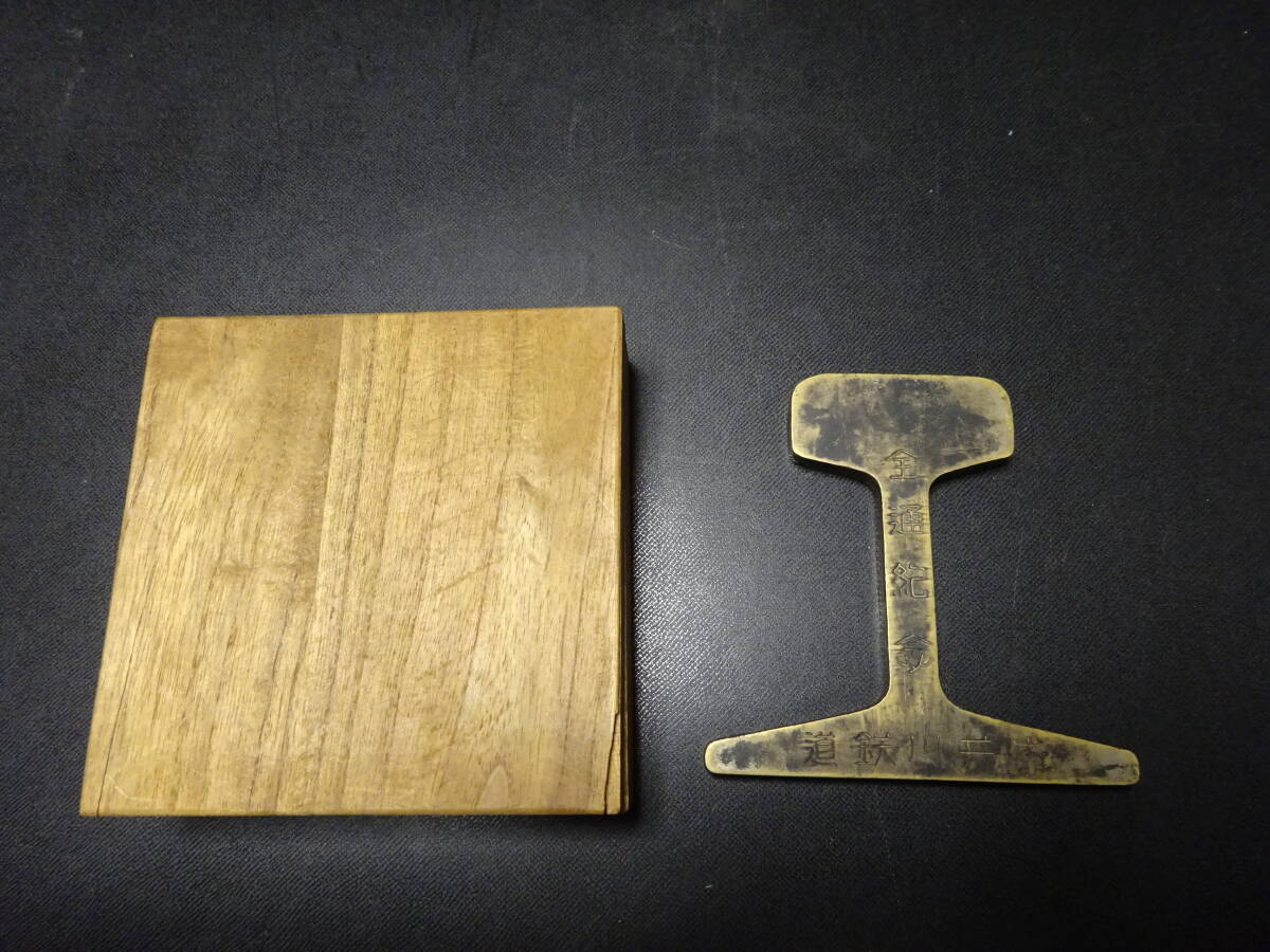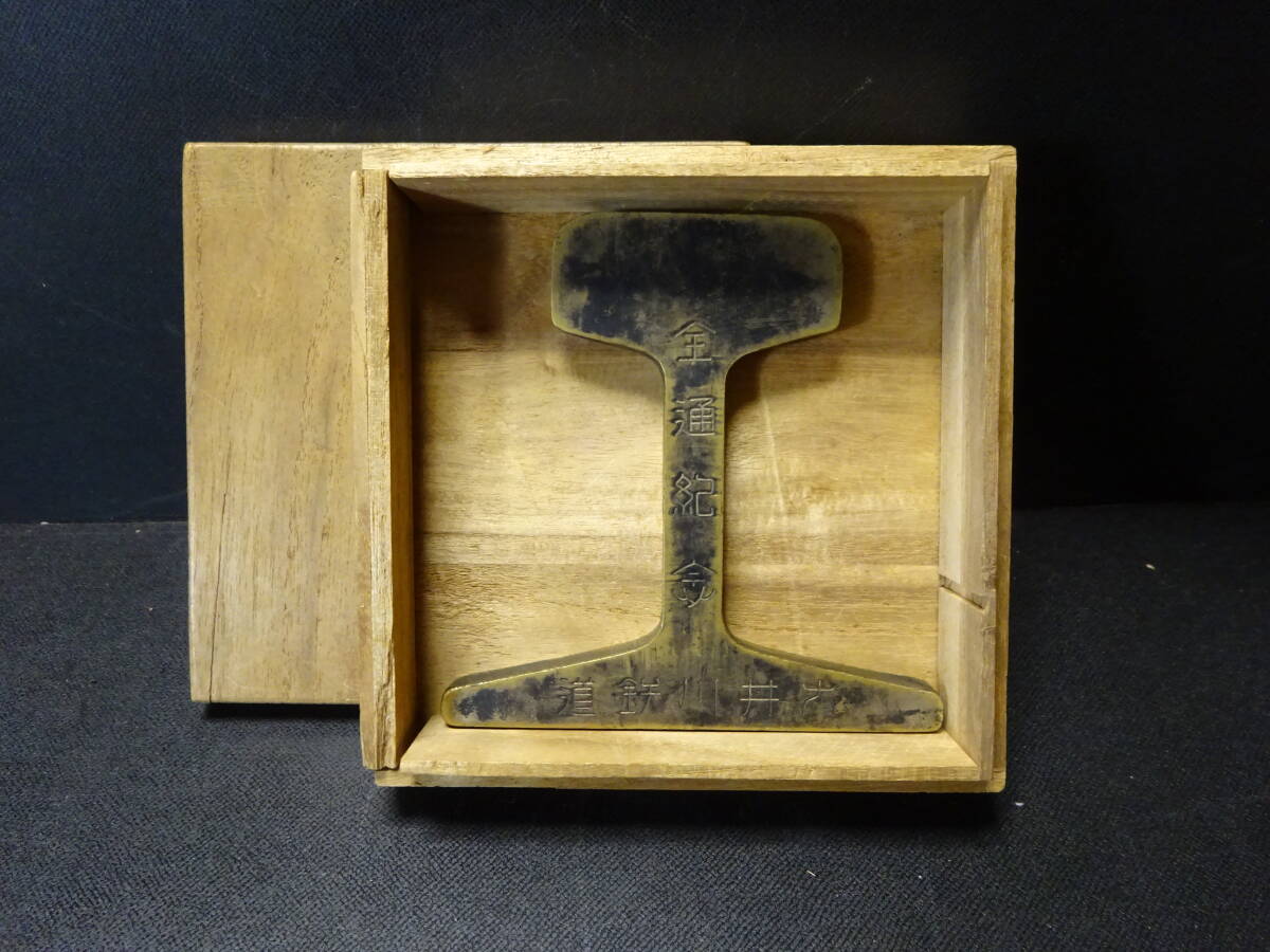 (10−10)珍品貴重 大井川鉄道全線開通記念品 レール(真鍮製)「全通記念大井川鉄道昭和六年十二月」と陰刻 現在SL運行?箱は合わせ箱と思います。