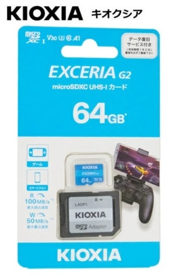 KIOXIA microSDXCカード64GB EXCERIA Class10 UHS-IU3 V30 A1対応 100MB/s アダプター付属 4KフルHD録画対応カード KMU-B064GBK