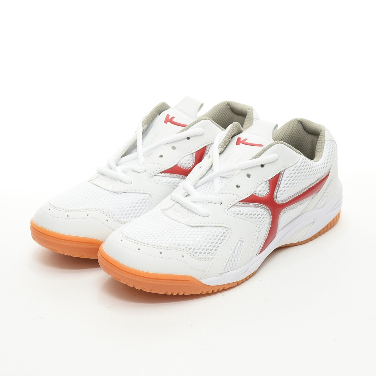 □515827 新品同様 JES 日本教育シューズ協議会 ○体育館シューズ 上履き スニーカー PK-X3 サイズ24.5cm レディース ホワイト レッド