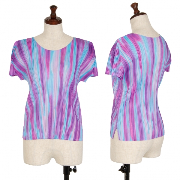 プリーツプリーズPLEATS PLEASE グラデーションプリントカットソー 水色紫3 |