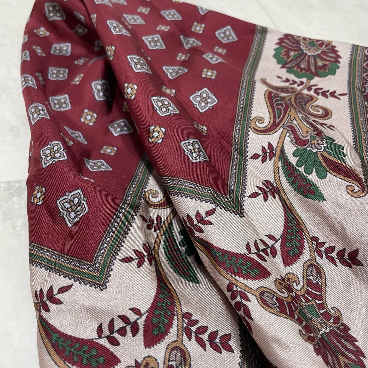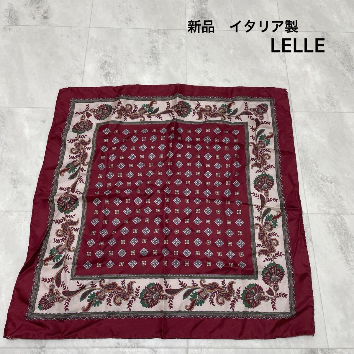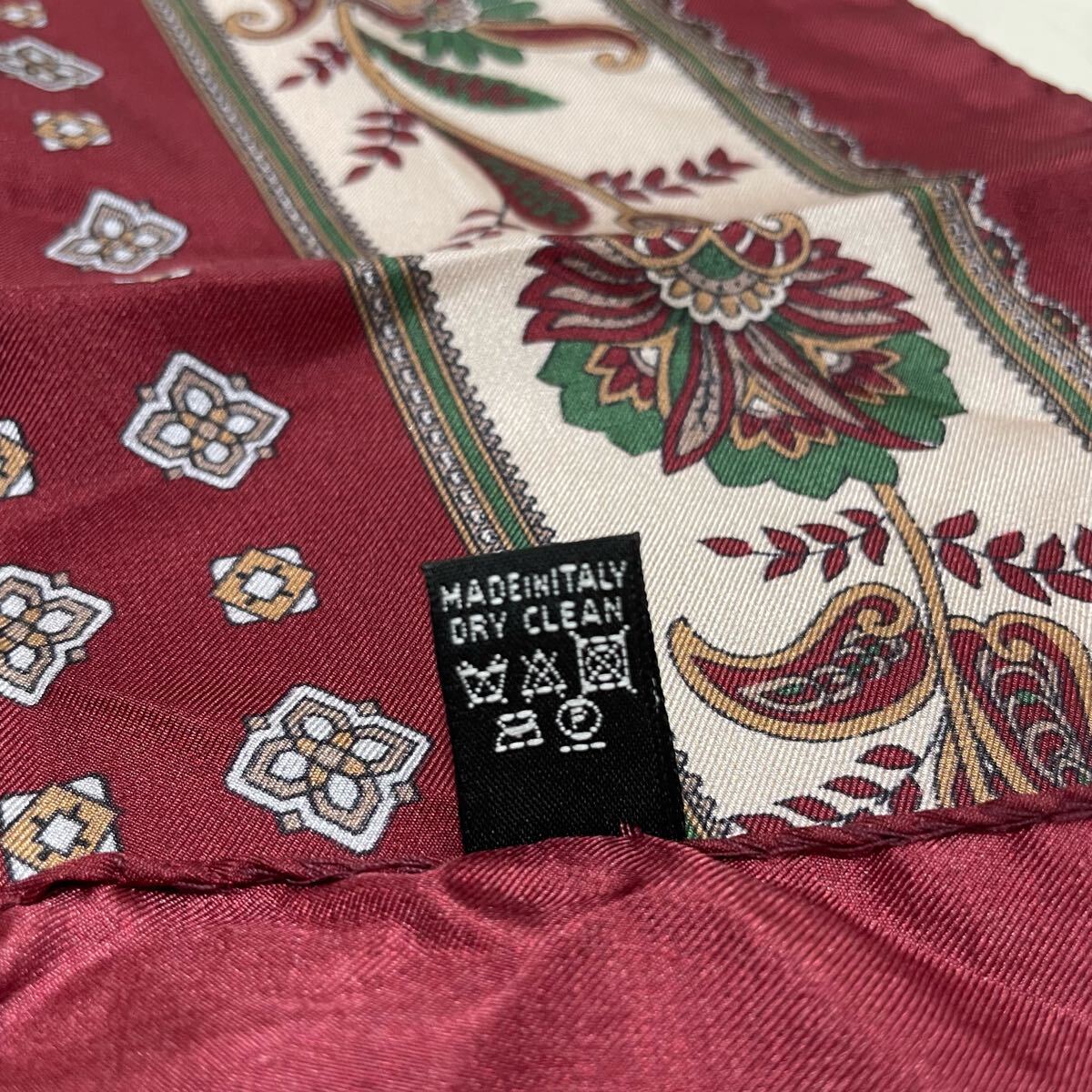 新品 イタリア製 LELLE レレ バンダナ ハンカチ スカーフ シルク100% 高級 フィレンツェブランド ボタニカル ワインレッド 玉SS3429
