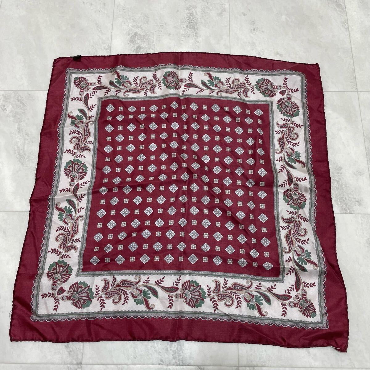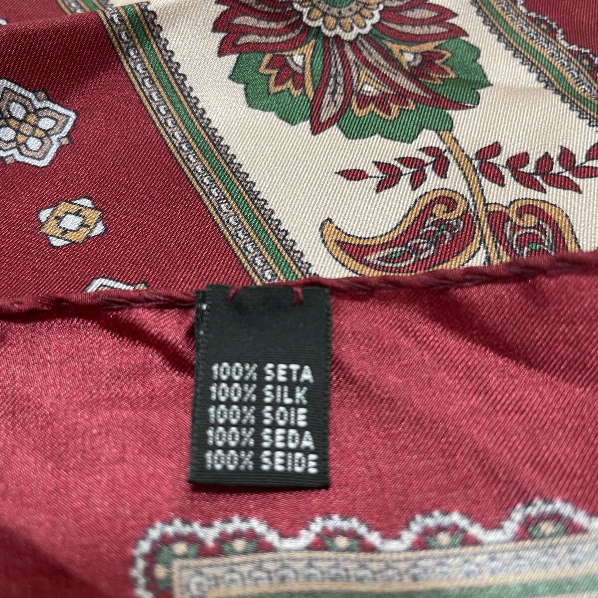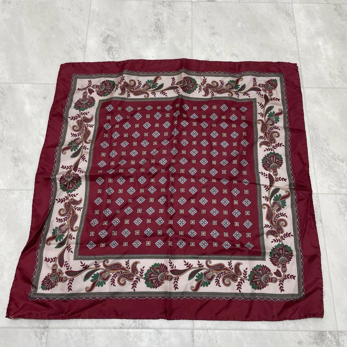 新品 イタリア製 LELLE レレ バンダナ ハンカチ スカーフ シルク100% 高級 フィレンツェブランド ボタニカル ワインレッド 玉SS3429
