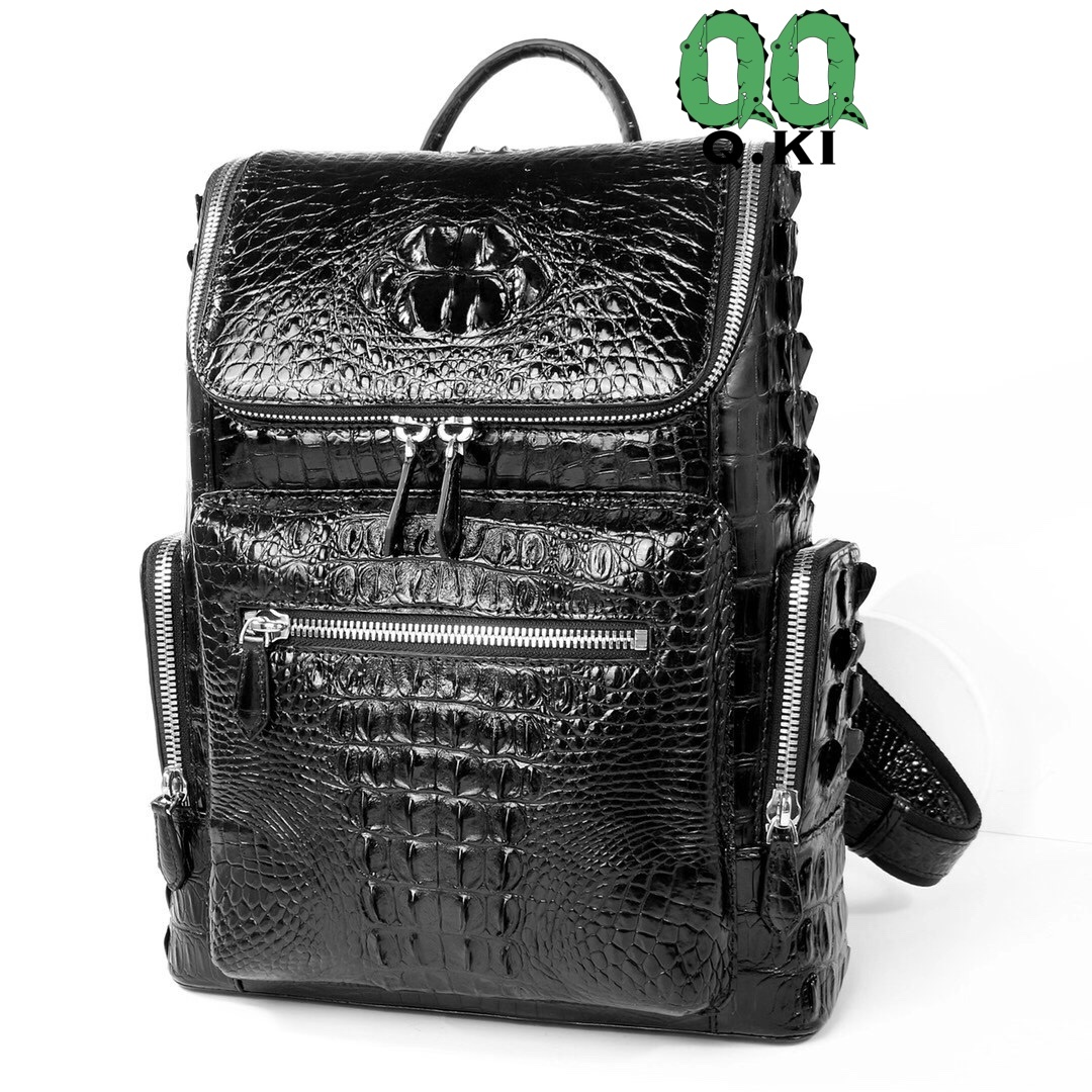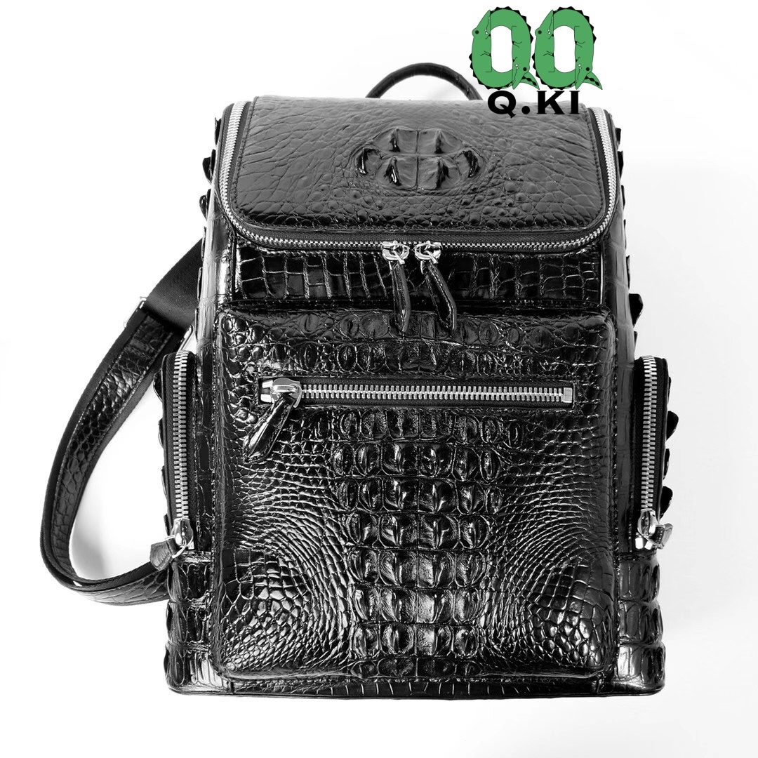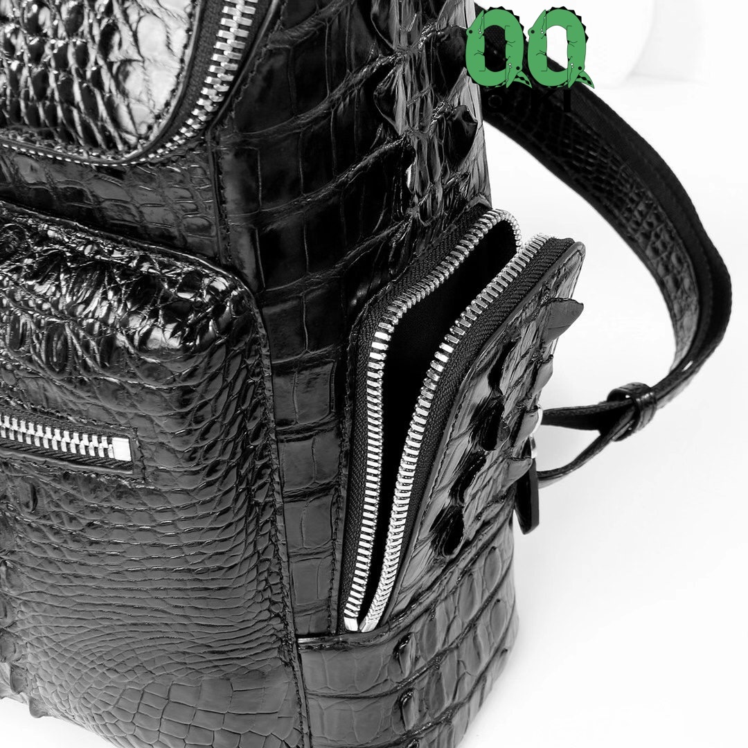 クロコダイル本革 リュックサック マンズバックパック ゴツゴツ質感 鰐革本物 手提げ 黒