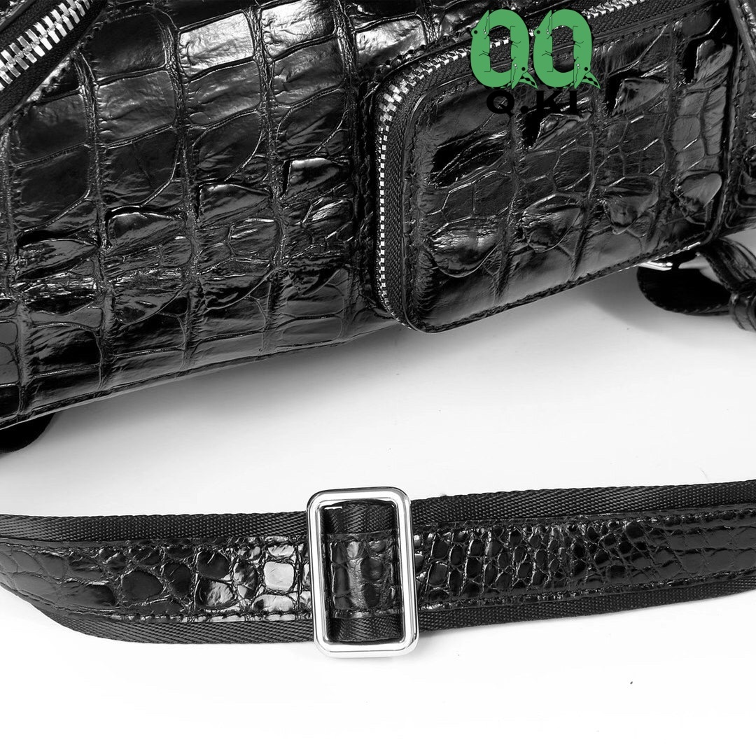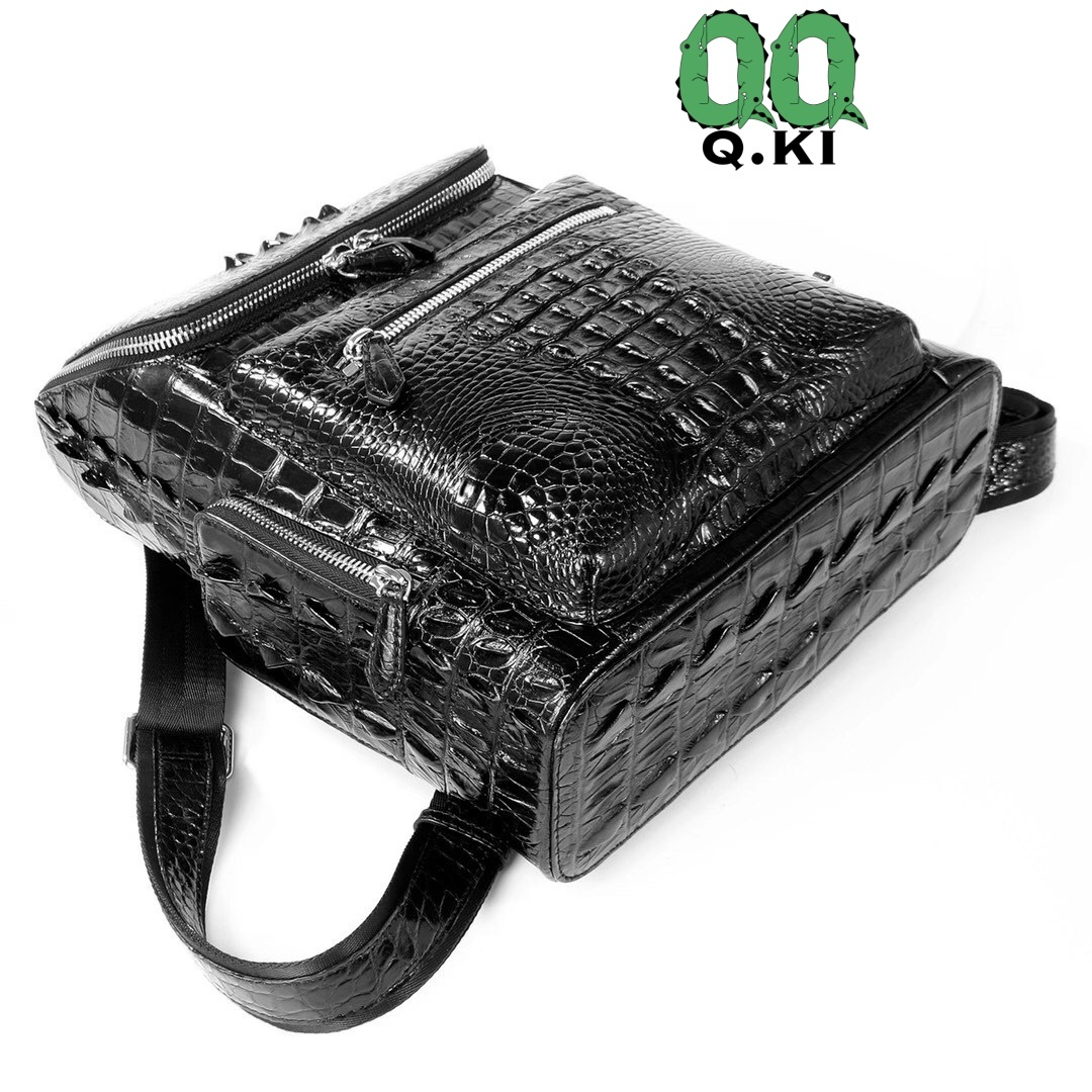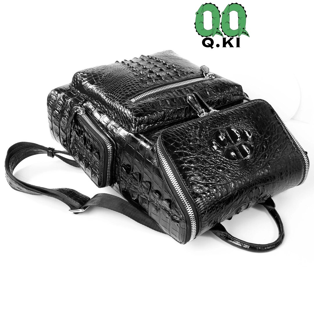 クロコダイル本革 リュックサック マンズバックパック ゴツゴツ質感 鰐革本物 手提げ 黒