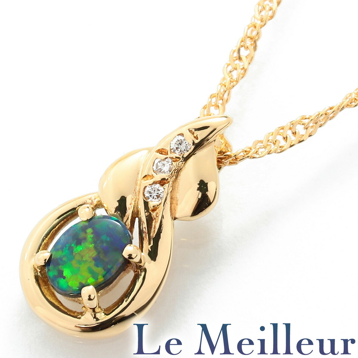 ブルーの地色からグリーンを基調とした色美しく神秘的なプレイオブカラーを放つブラックオパールをあしらったペンダント。控えめながらも確かな存在感を放つダイヤモンドが、気品を添え、胸元に華やかさをプラスしてくれます。上品でエレガントな輝きをぜひお手元に。