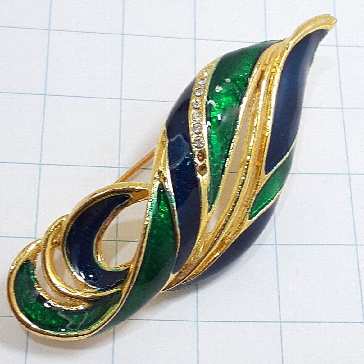 送料無料)ビンテージ☆七宝仕上げ 木の葉モチーフ☆アンティーク ブローチ A29446