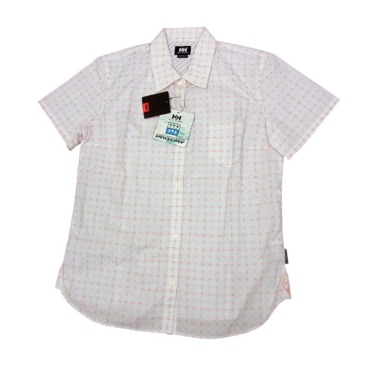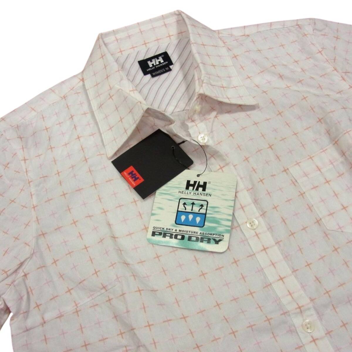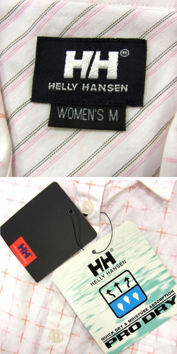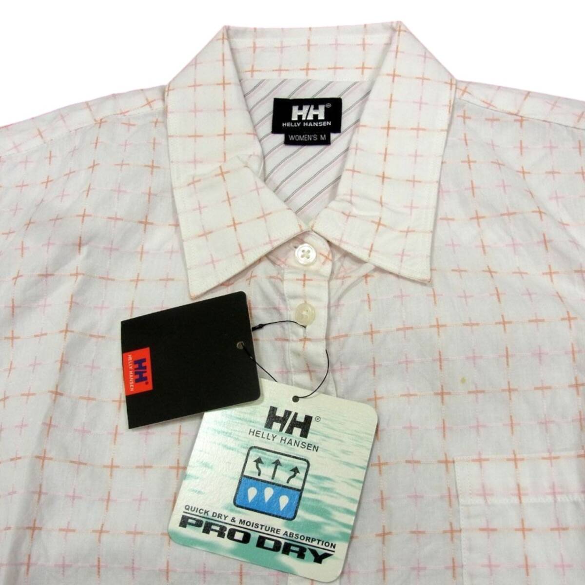 $ 新品 タグ付き $ ■ HELLY HANSEN ヘリーハンセン■ 前開き 総柄 吸汗速乾・ 半袖シャツ ドライシャツ■レディース M ■ 白 ピンク■刺繍