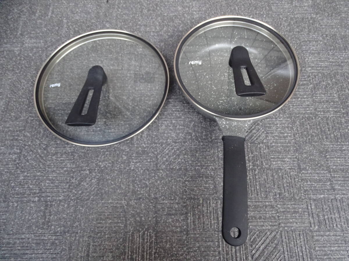 レミパンの蓋2点、フライパン1個、すべて中古ですが大きな傷やぶつけたような跡はなく良好だと思います。