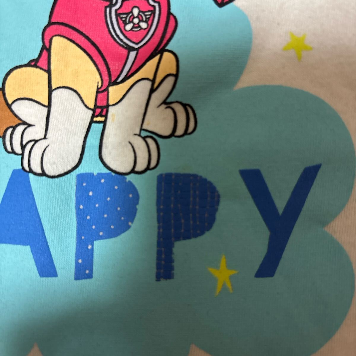 ●「HAPPY」のロゴは少し立体感がある発砲プリントで、「P」の文字はドットとチェックになっています。