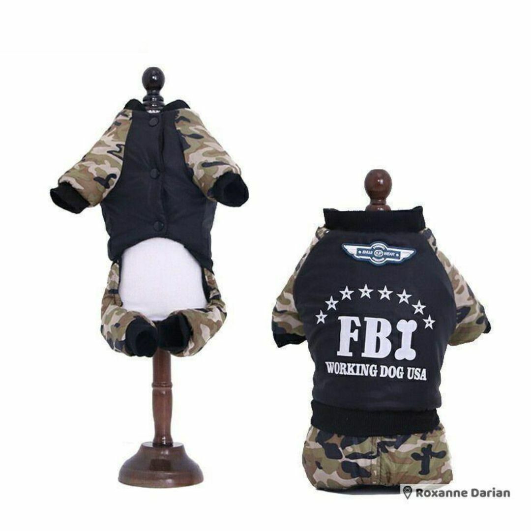 迷彩 子犬 ペット服 コート 厚み 保温 パグ ダウンジャケット 防水 小型犬 ジャンプスーツ 防寒 ペット用品 FBI