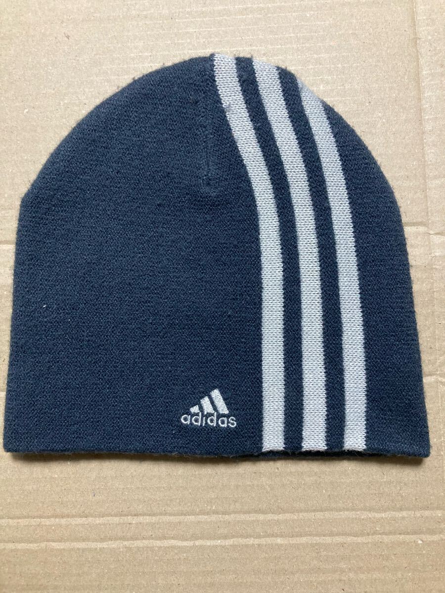 【adidas】アディダス ニットキャップ帽子 紺★三本ライン