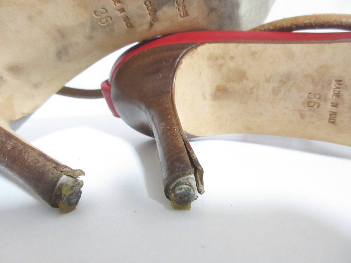 ヒール先は修繕が必要です。ヒールのソール部分に剥がれがあります。
