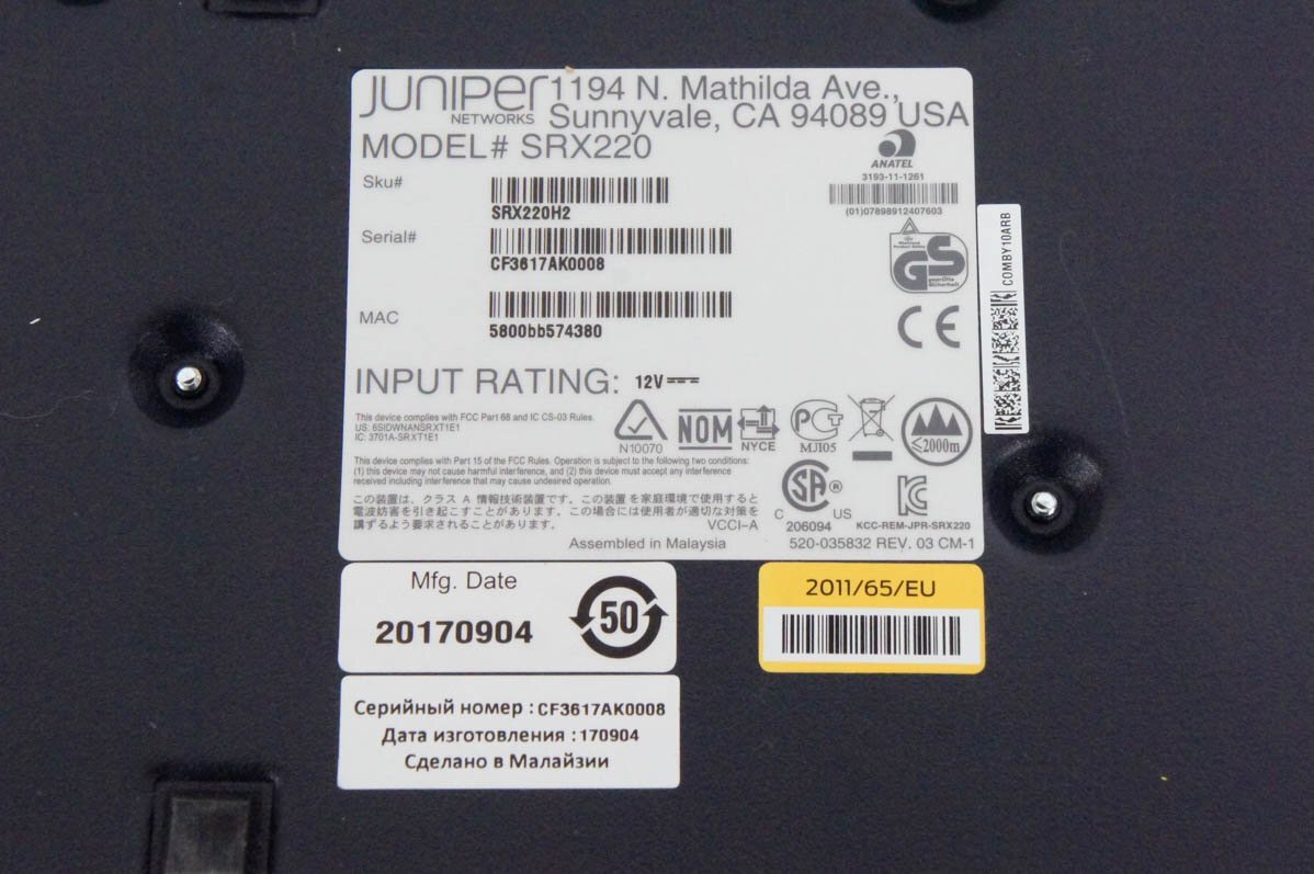 | 2 Juniper NETWORKS サービスゲートウェイ SRX220 | |||