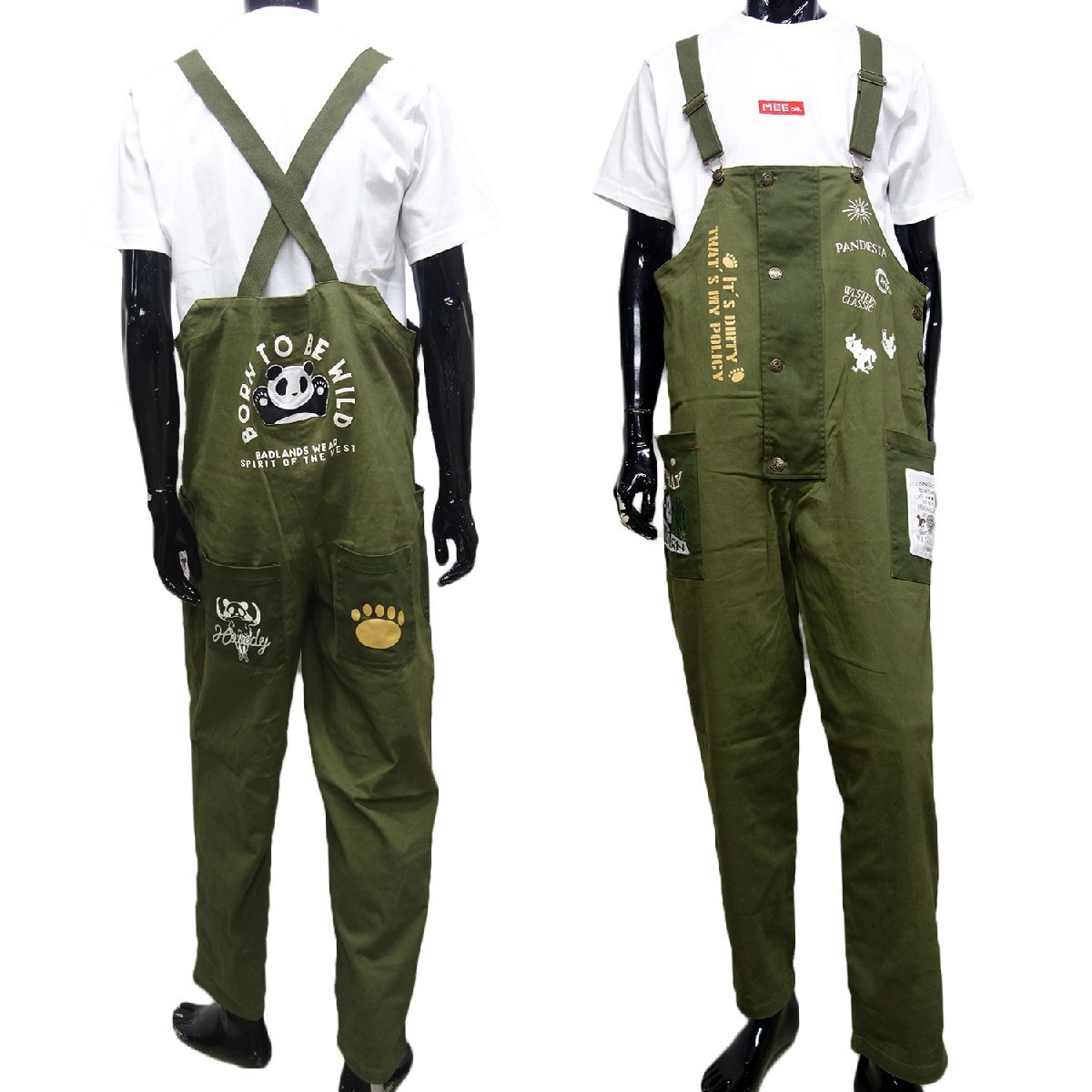 やや肉厚のコットンツイルに、ストレッチ素材を組み合わせた動きやすいデッキパンツです。アウトドアやハイキング、キャンプなどのアクティブなシーンから、タウンユースまで幅広く活躍する1本。メンズ向けのサイズ感ながら、リラックスしたシルエットで女性にもおすすめのユニセックス仕様です。パンディエスタらしい遊び心あるディテールと、人気の熊猫モチーフがポイント。春のおしゃれに映える、こだわりのサロペットパンツです。