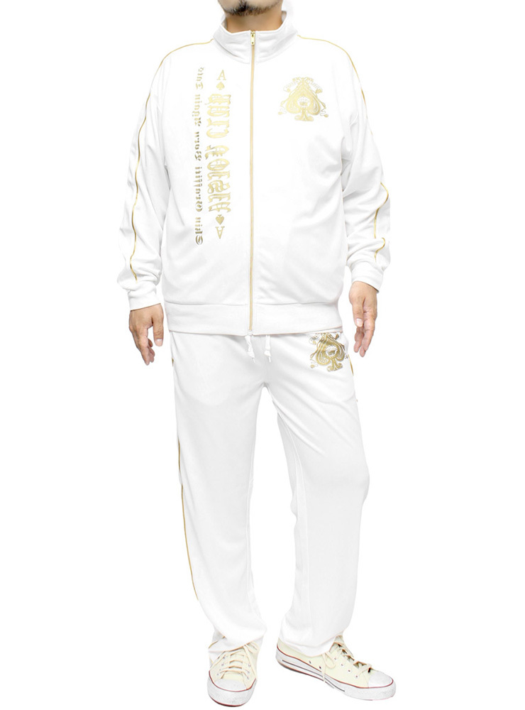 | 商品名 | 【新品】 M ホワイト 長袖 セットアップ メンズ 長袖 半袖 フルジップ ブルゾン イージーパンツ パイピング使い ジャージ |