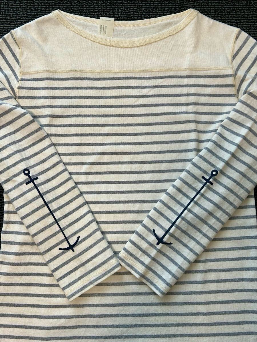 ボーダー、ボートネック、袖の錨マークとマリン感漂うアイテムです。