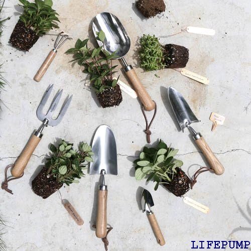 タモ材とステンレスの素朴な組合せのガーデンツールシリーズです。