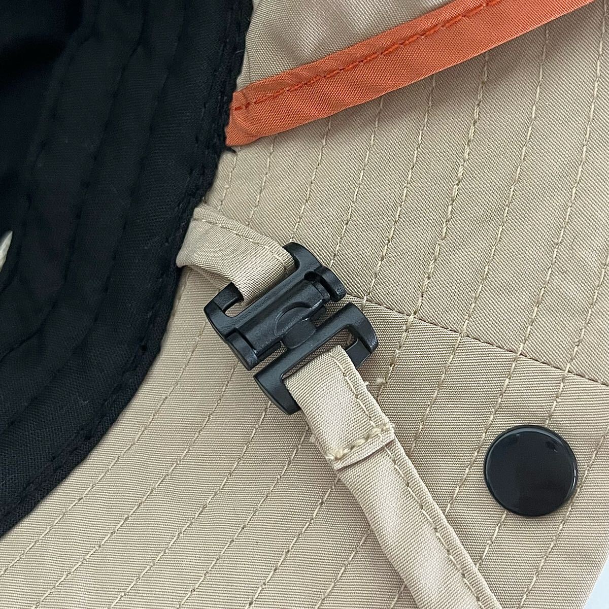 万が一、どこかに引っ掛かっても首を締め付けないように安全面も考慮し、強い力が加わると帽子からあご紐が外れるセーフティジョイント付き。