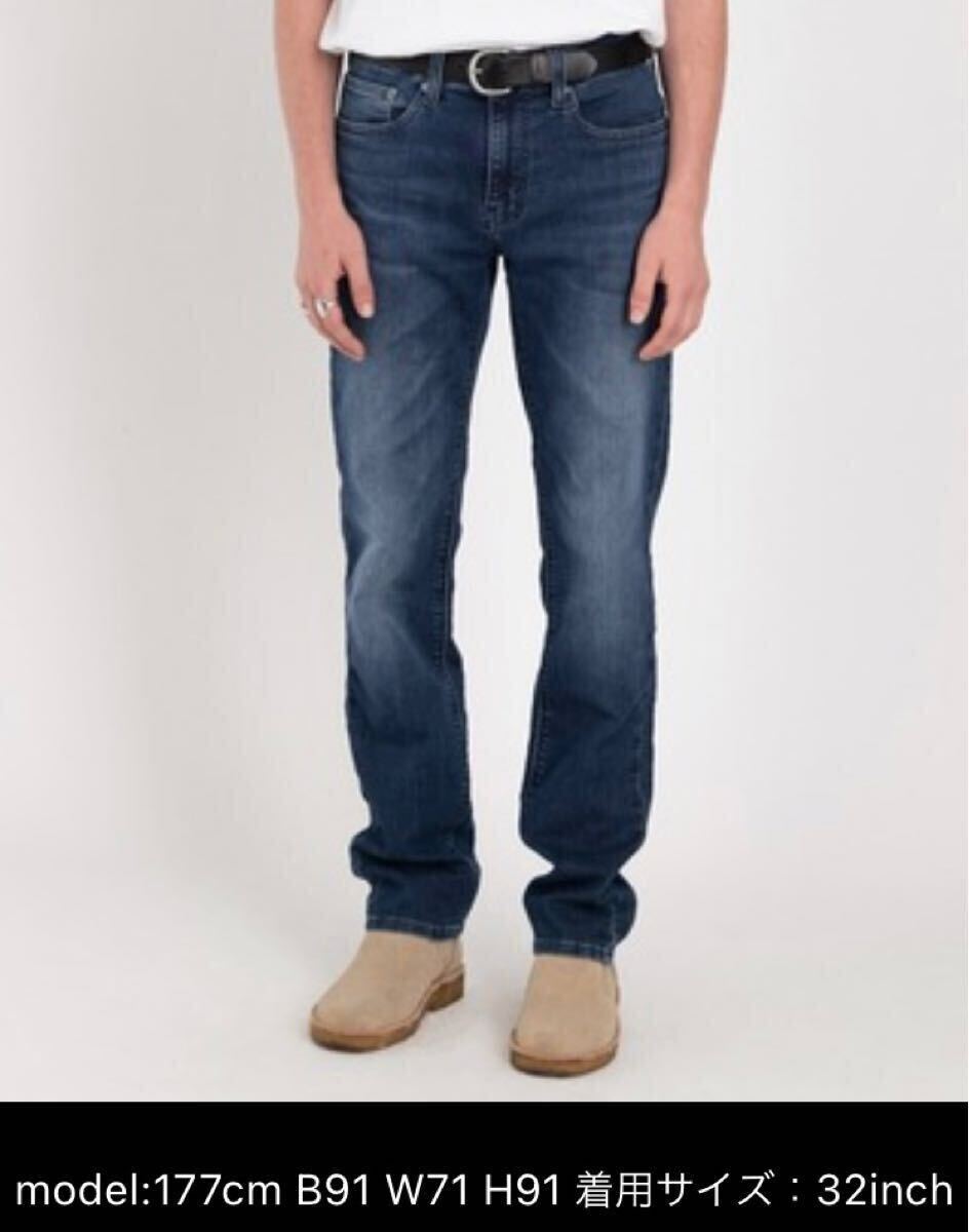 W29 L32:ウエスト74 ヒップ90 パンツ丈105 股上25 股下80 もも周り52 すそ周り34