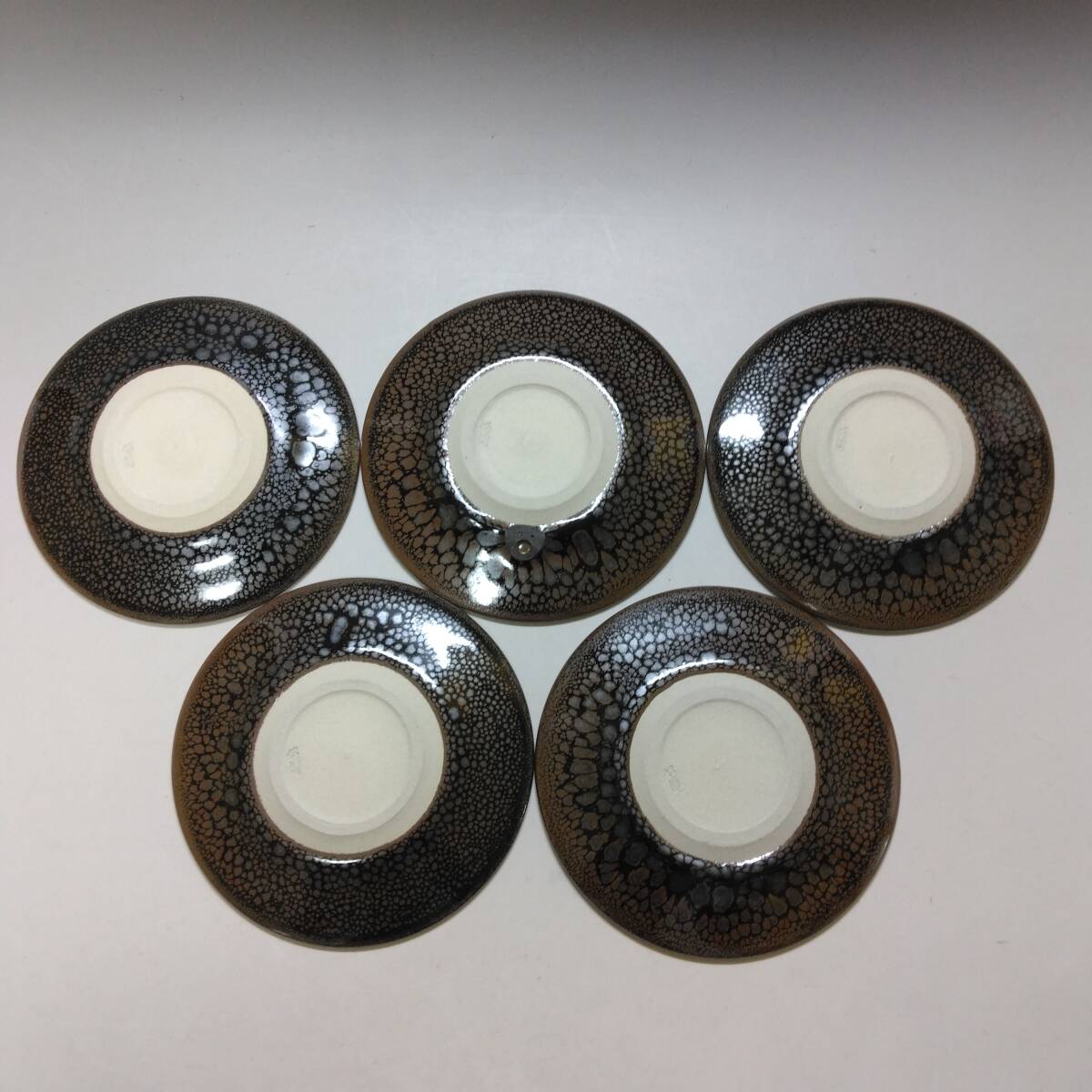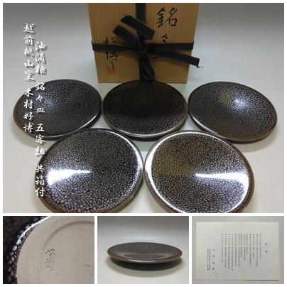 【T-377】越前桃山窯 木村好博 油滴釉 銘々皿 5客組 共箱付 茶道具 | |||