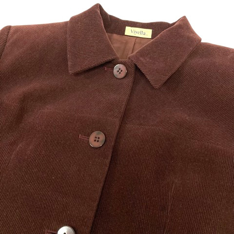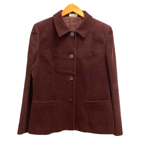 Viyella ジャケット カシミヤ混 コーデュロイ 長袖 無地 11 赤 ワインレッド レディース