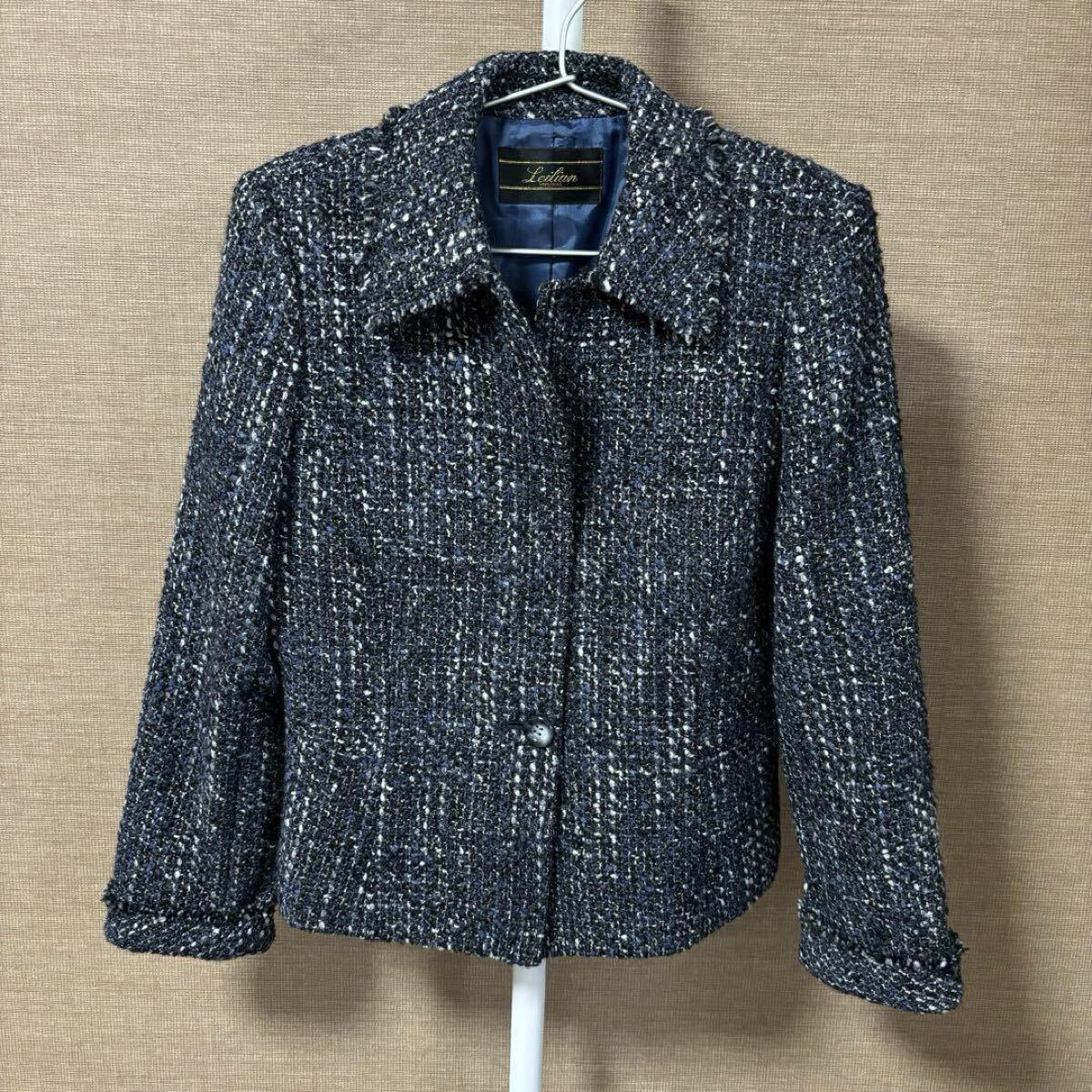 Leilian レリアン ツイード 一つ釦 ジャケット ネイビー 9号