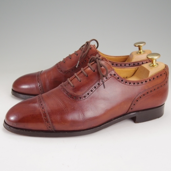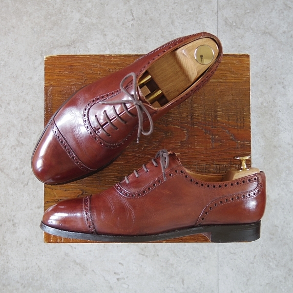 ■-------------------------------------- 【サイズ別一覧】 ご自身のサイズに近いリストからお選びください。合いそうな商品のみを確認することが可能です。 ■サイズ6前後、6以下 https://sellinglist.auctions.yahoo.co.jp/studio.CBR/6+5+4 ■サイズ7前後 https://sellinglist.auctions.yahoo.co.jp/studio.CBR/7 ■サイズ8前後 https://sellinglist.auctions.yahoo.co.jp/studio.CBR/8 ■サイズ9前後、9以上 https://sellinglist.auctions.yahoo.co.jp/studio.CBR/9+10+11X ■レディース https://sellinglist.auctions.yahoo.co.jp/studio.CBR/レディース ■-------------------------------------- 【ブランド】Crockett&Jones/クロケット&ジョーンズ 【モデル】SURREY/サリー 【サイズ】6E 【アウトソール】長さ27.5cm×幅9.9cm 【カラー】CHESTNUT ANTIQUE/茶 【素材】カーフ 【ソール】レザーソール 【付属品】純正シューツリー 【その他】付属品の純正シューツリーは画像10枚目のブランドプレート付きツリーとなります。それ以外の金ハンドルのツリーは撮影用となり、付属品ではございません。予めご了承くださいませ。 ■-------------------------------------- 【分類】38b(店舗用番号となり、商品スペックとは関係ありません) ■-------------------------------------- ・定価¥95,000-、こちらはコアなファンに定評のある、ロイドフットウェア別注/マスターロイドのお品物。作りとしては、ランクの高いハンドグレードライン同様の製品となります。 ・アッパーには高級靴特有の自然な光沢感があり、丁寧にケアをされながら使用をされていた印象です。 またソール、ヒール共にオリジナル状態となります。尚、つま先はレザーでレストア済みです。 ☆使用による傷、汚れ、色むら、使用感等があります。また、カウンターライニングはレストア済みとなります。以上了解の上ご購入ください。 ☆別注商品の場合ブランド、ショップロゴのみがソックシートに印字されている場合がございます。 ☆付属品に関して記載がない場合は本体のみとなります。 ■-------------------------------------- | ||||