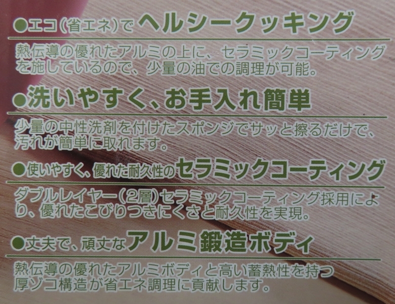 ・表面加工:内面/セラミック加工 外面/焼付塗装