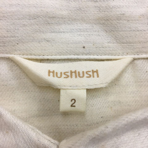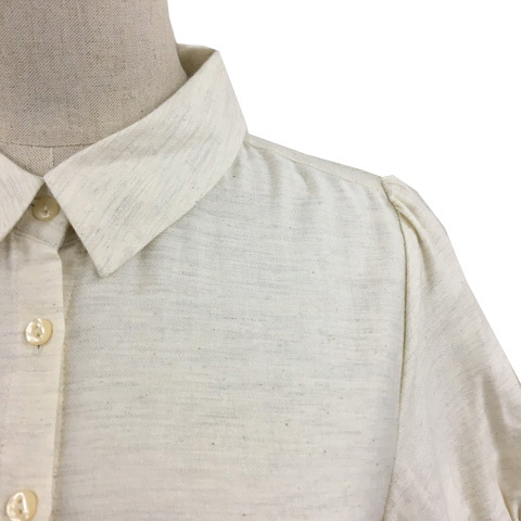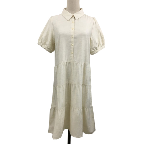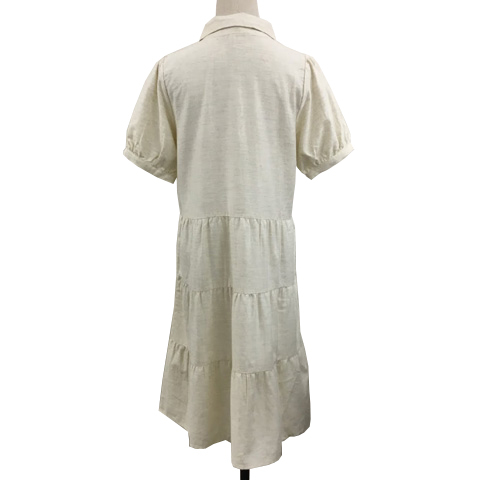 ハッシュアッシュ ワンピース シャツワンピ Aライン ひざ丈 メランジ ティアード 無地 パフスリーブ 半袖 2 38 ベージュ 白