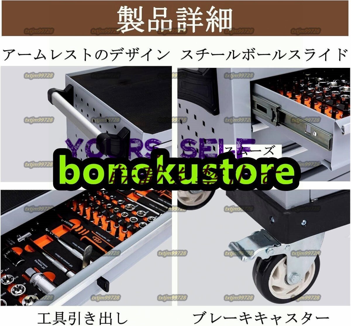 商品説明 【商品詳細】★状態:新品未使用【多機能な収納設計】このツールカートには複数の引き出しとキャビネットが装備されており、さまざまな工具や大きな工具セットを保管できます。引き出しのスチールボールスライドにより、詰まりがなく簡単に出入りできるため、工具に