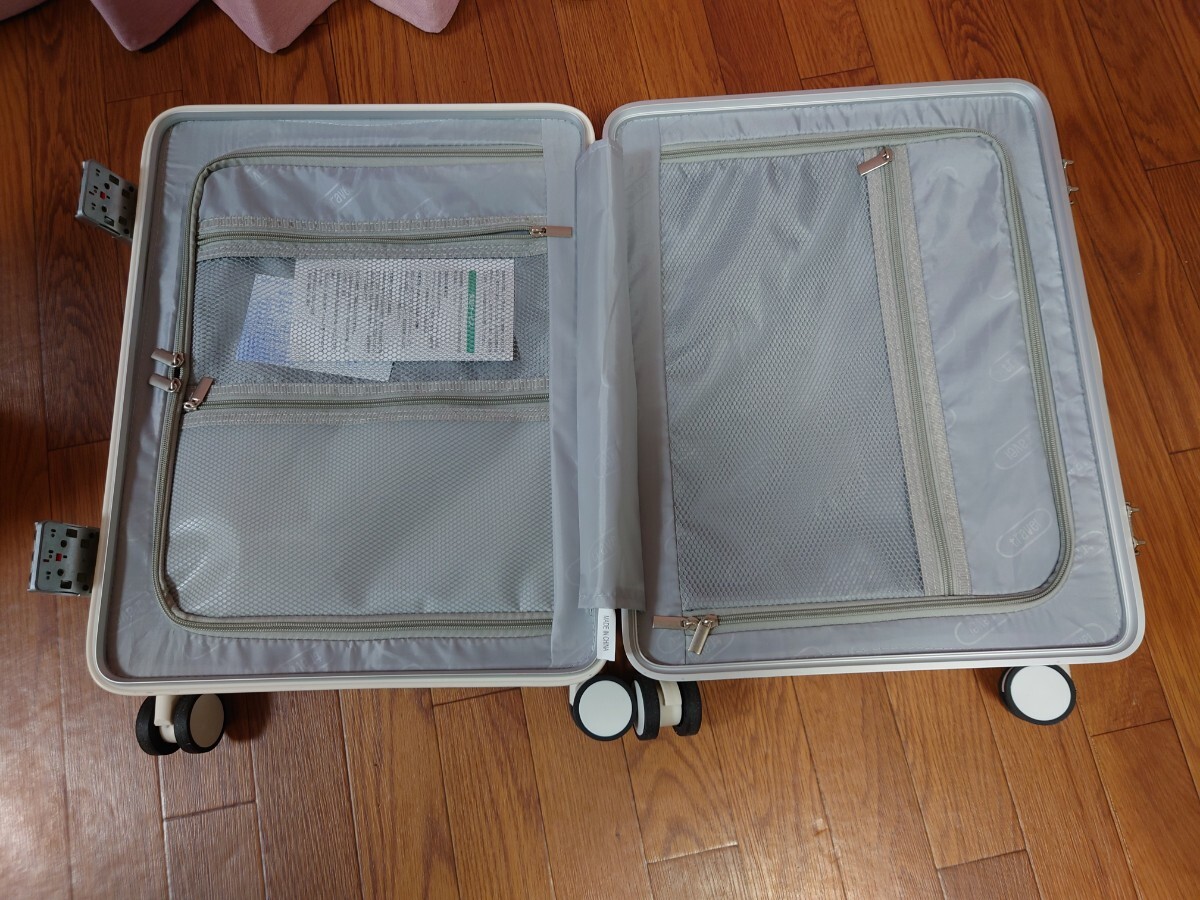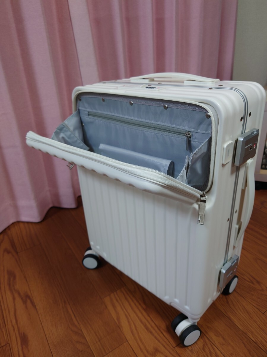 表面にはドリンクホルダーと、ファスナーポケットが付いてます。