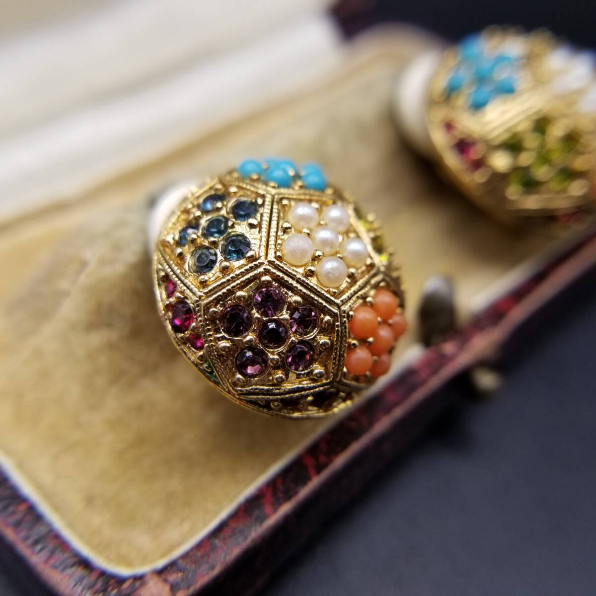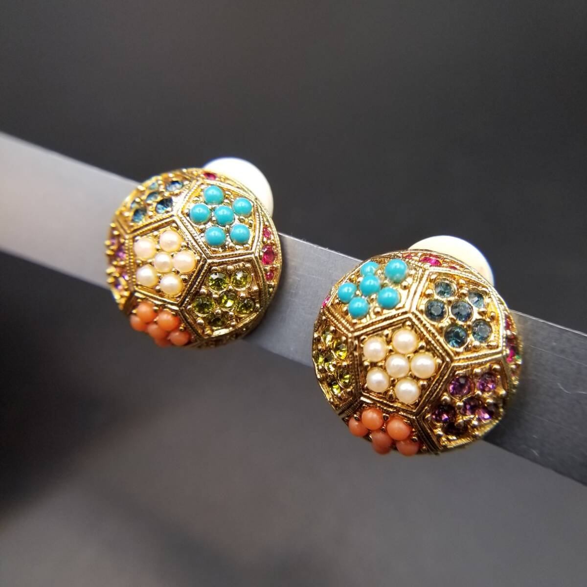 D'ORLAN カナダ ヴィンテージ マルチカラー ラインストーン装飾 クリップ イヤリング ゴールドトーン スワロフスキークリスタル エレガント 存在感 Y23-L