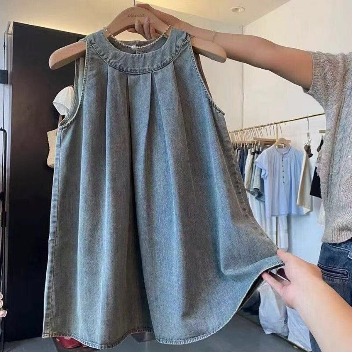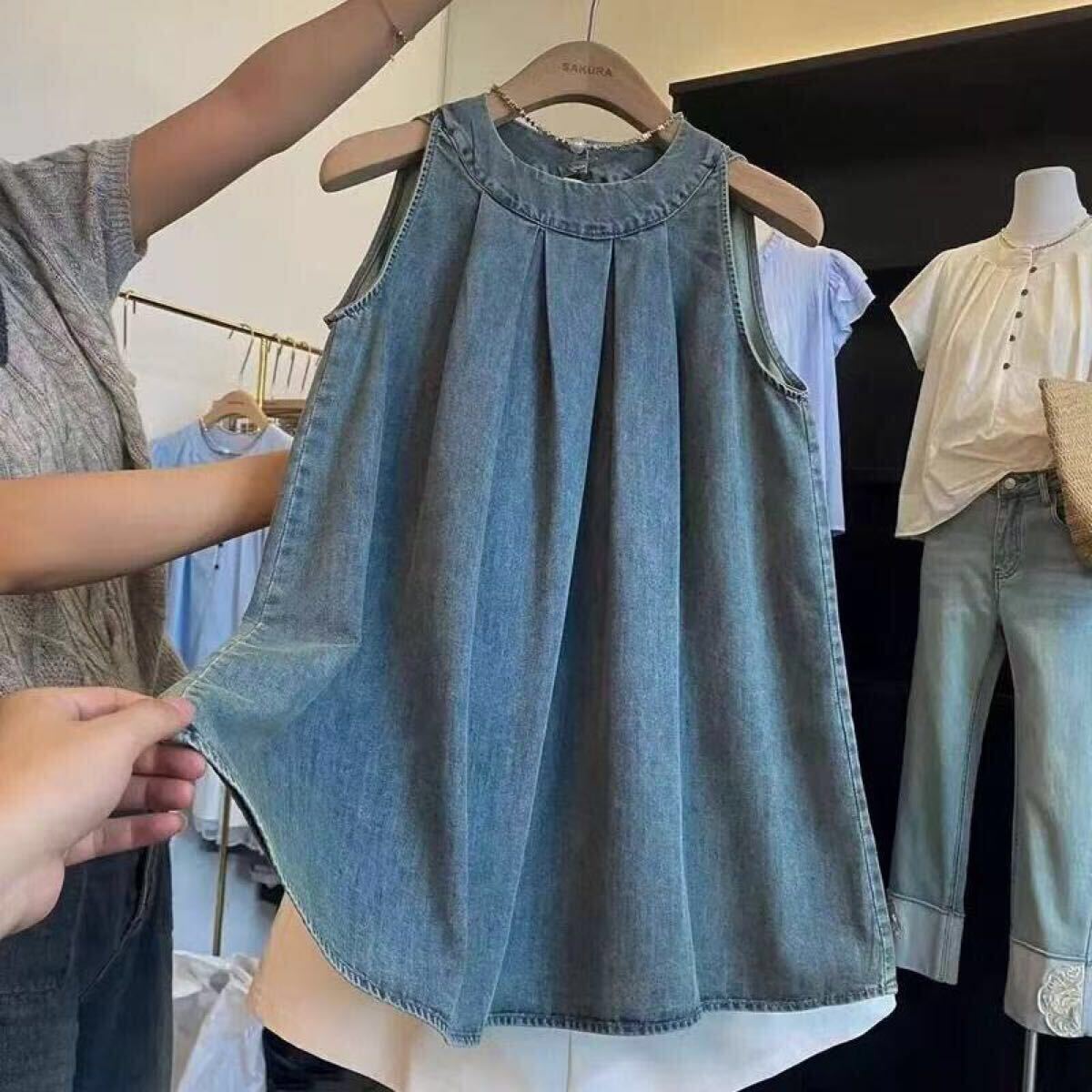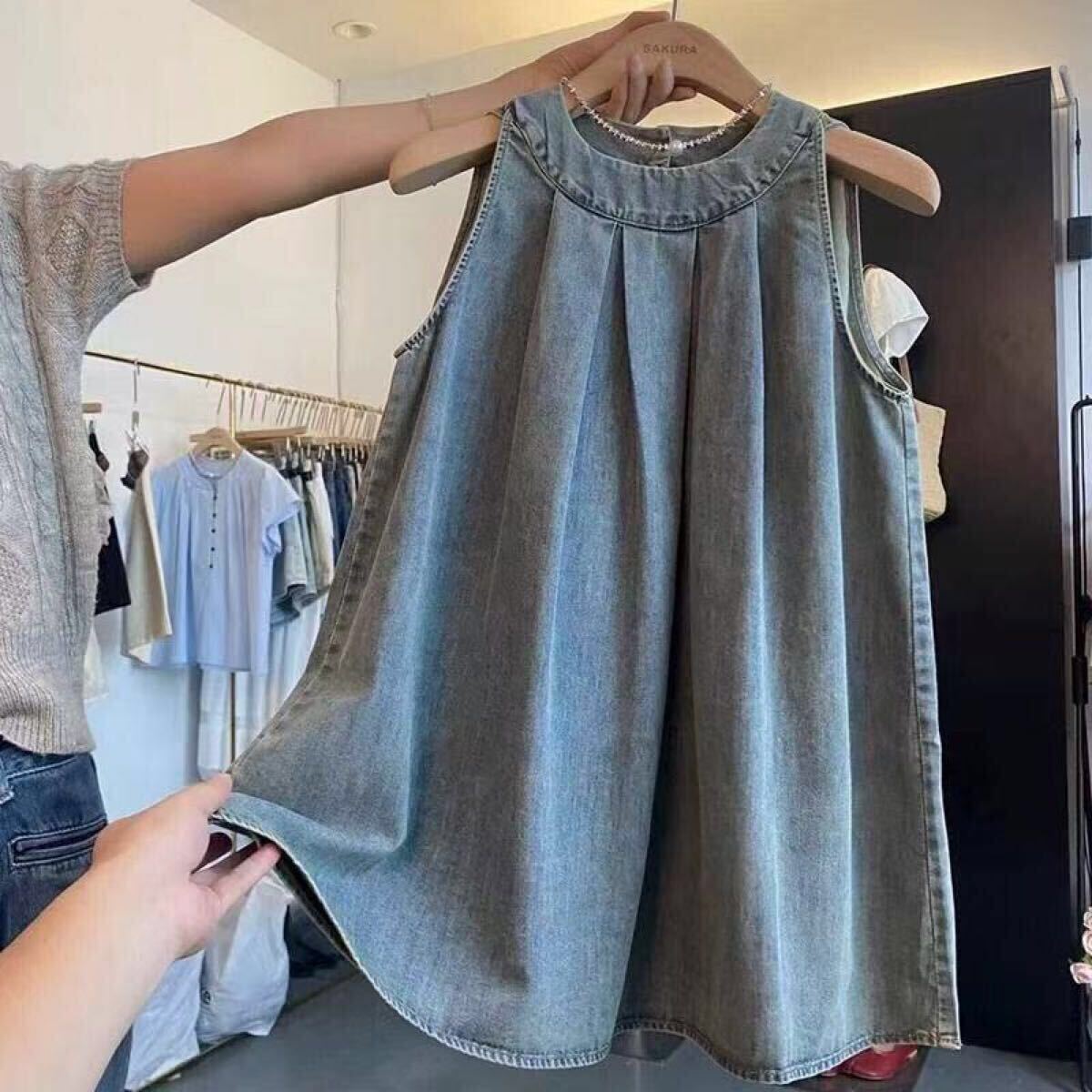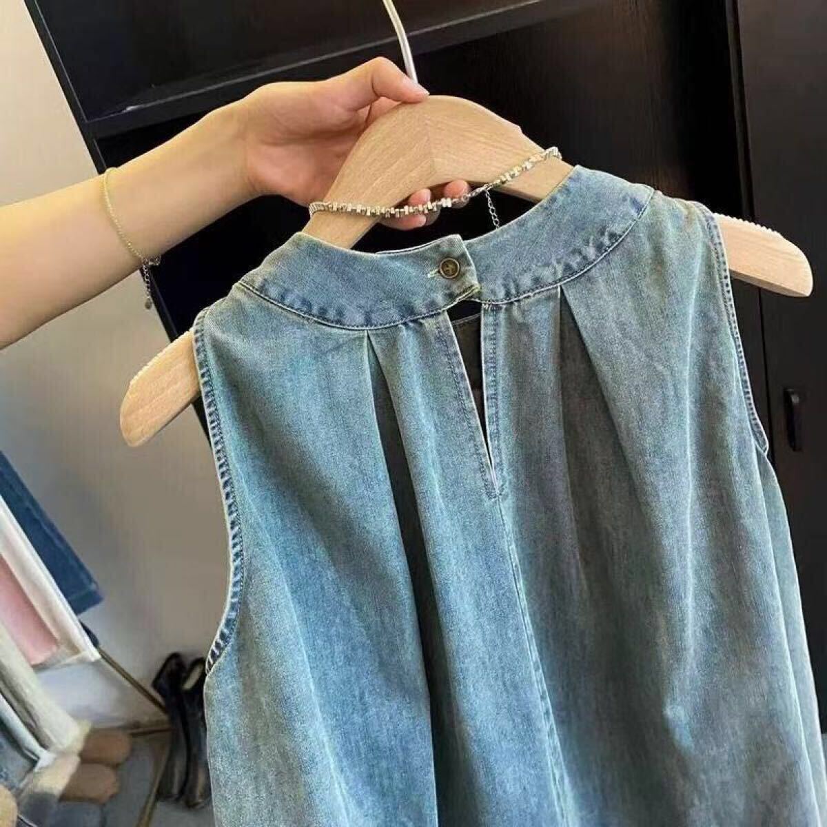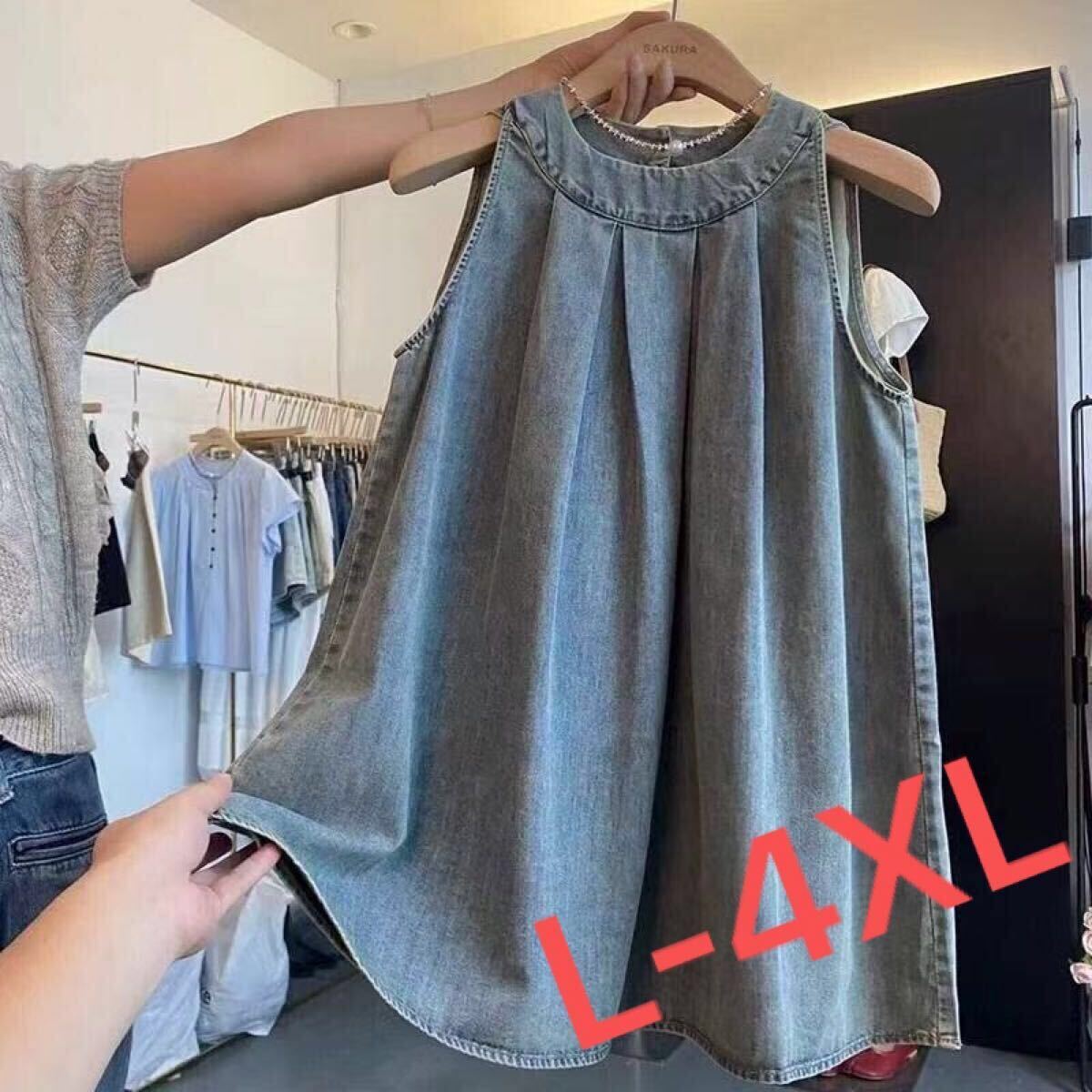 シャツ デニム ノースリーブ レディース 大きいサイズ ブラウス デニムシャツ デニムベスト 春夏 タンクトップ 無地 薄手 ゆったり プルオーバー おしゃれ 大人 LUGA027(L-4XL)