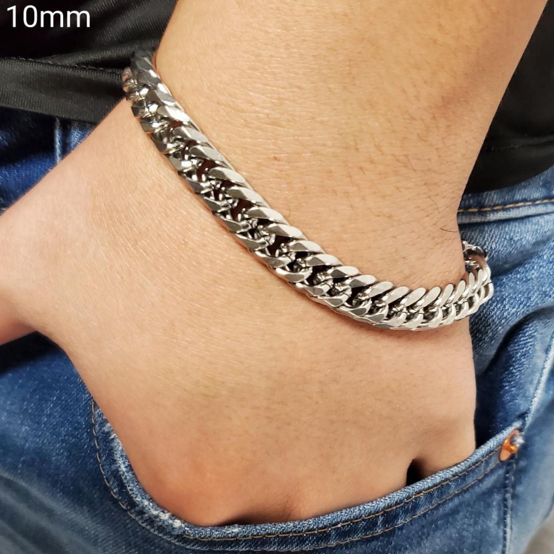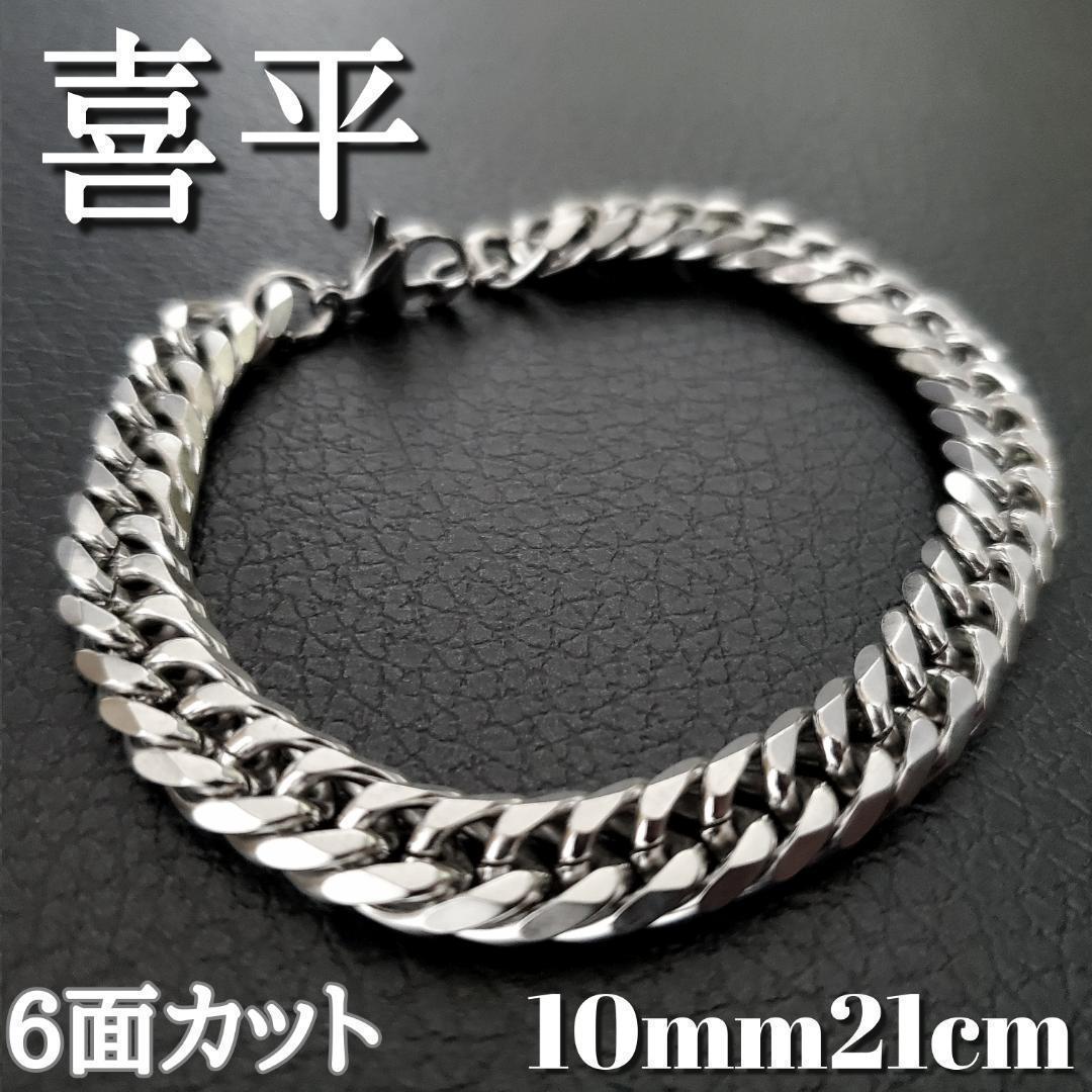 6面ダブル 喜平チェーンブレスレット 10mm21cm ステンレスシルバー