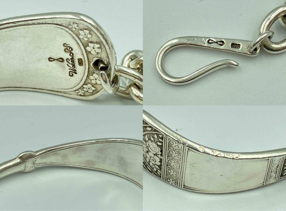 ブランド名:ワカン 素材:SV925 品名:ブレスレット 着用サイズ:約18cm トップ幅:約4~18mm 総重量:約32.2g ※画像のものが全てです。 ※サイズはスタッフが手作業で計測しており、誤差が生じる場合がございます。 ※こちらの商品は店頭併売のため出品時以降小キズや汚れがつく場合がございます。予めご了承下さい。 ※撮影環境により実物と色が異なって見える場合がございます。 | ||||||