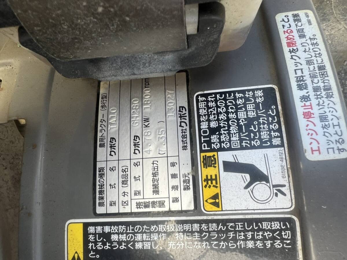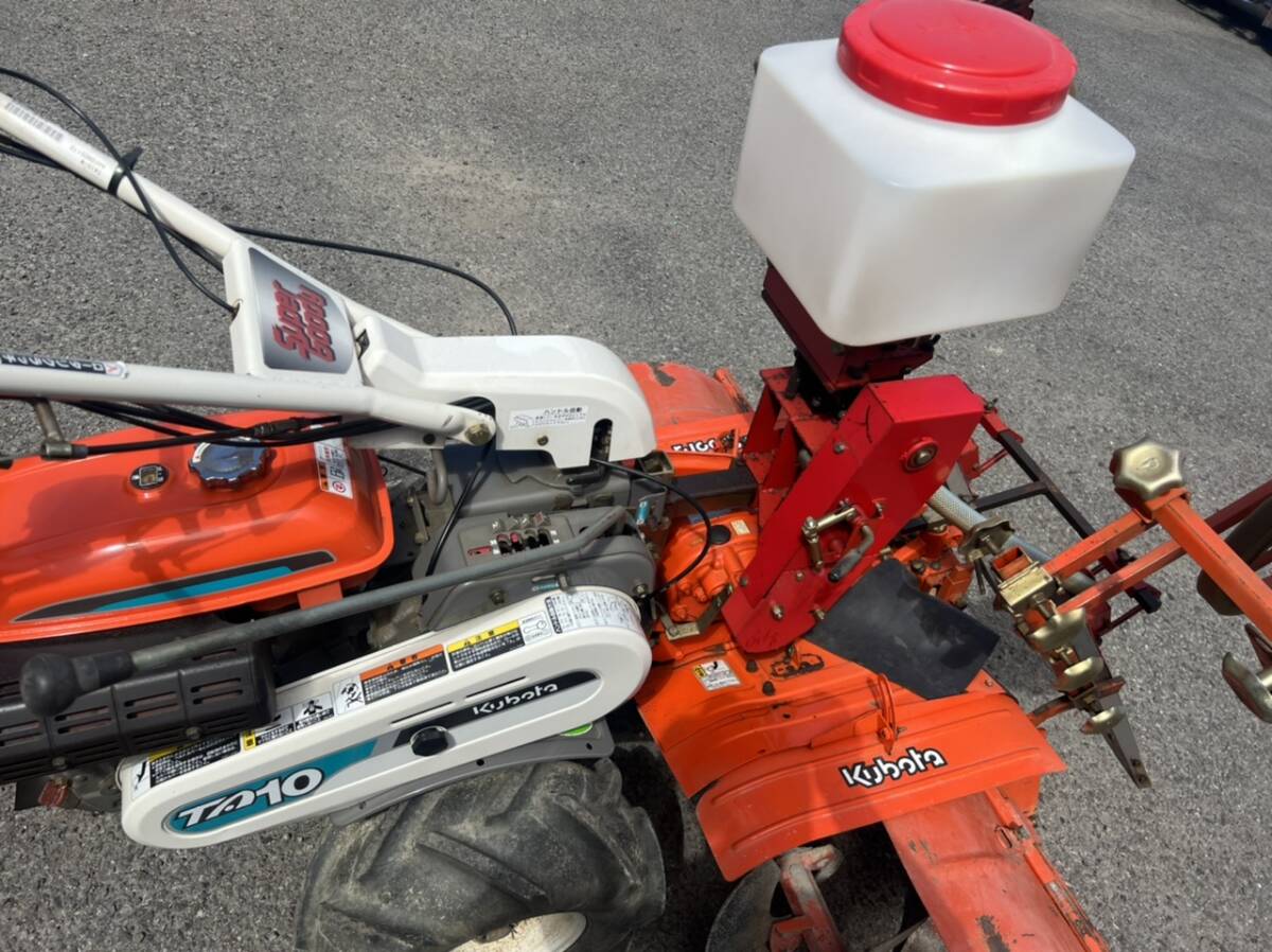 「重要!必ずお読みください!」この度ご覧に頂き、ありがとうございます。クボタマルチ張りTA10の出品になります。エンジン始動、各機関動作確認済み、実際作業するまでは確認していません。中古農機具に特有のサビ、傷が見えます、画像でのご確認をお願いします。肥料散布は後付けになります、送料無料。四国、中国方面当方からの運搬は可能ですが、自前にご相談ください。原則として、ノークレーム・ノーリターンでお願い致します。