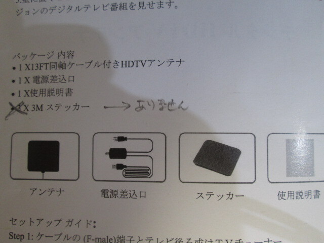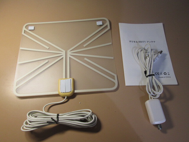 商品説明 | 商品説明: デジタルHDTVアンテナ 中古です。地デジ受信します。 貼り付け用の両面テープは取り替えてあります。 放送を受信できる方角の壁や窓に貼りつけることが必要です。 電源はテレビのUSB端子からとってください。 アンテナの大きさは約25X22.5cmです。 梱包品は アンテナ、電源差し込み口(USB、アンテナケーブル付き)、説明書です。 |